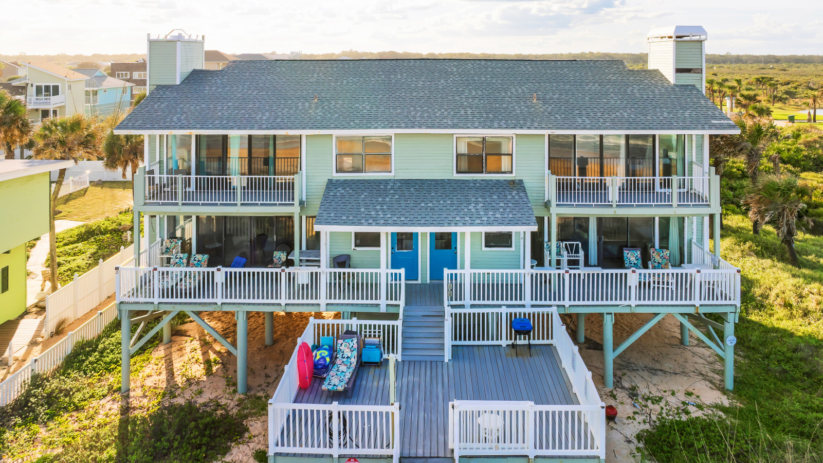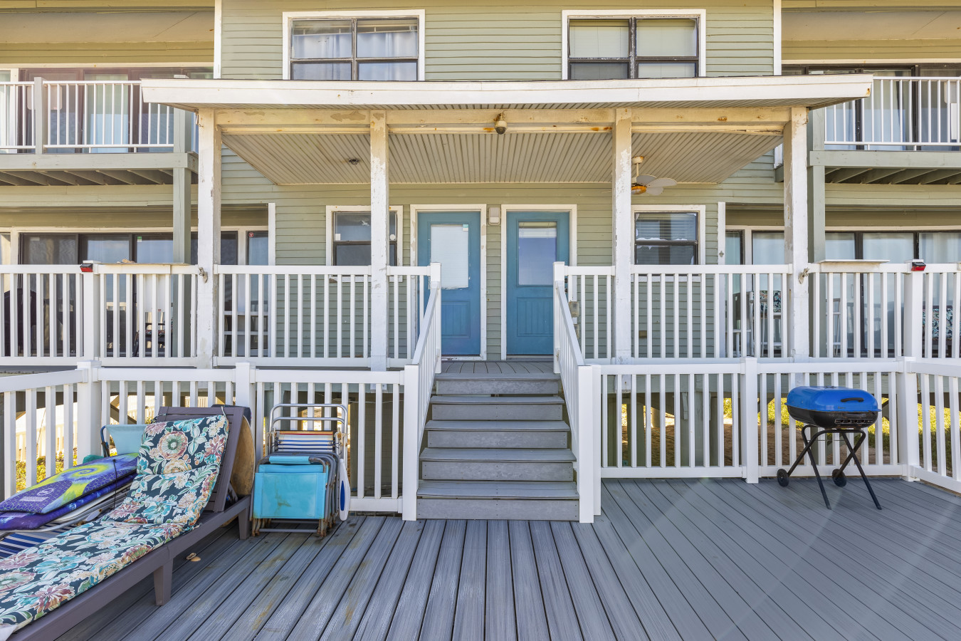 Unit has private entrance and is a huge townhouse directly on the beach. Patio/Deck is shared. The building is two townhouses, this is one side. This is the ultimate in what beach vacations are made of-house is on stilts and give a feel of stepping back in time to enjoy time with family and friends, yet still has all the modern luxuries to make your stay amazing. Please be sure to go 5 mph down the dirt road.