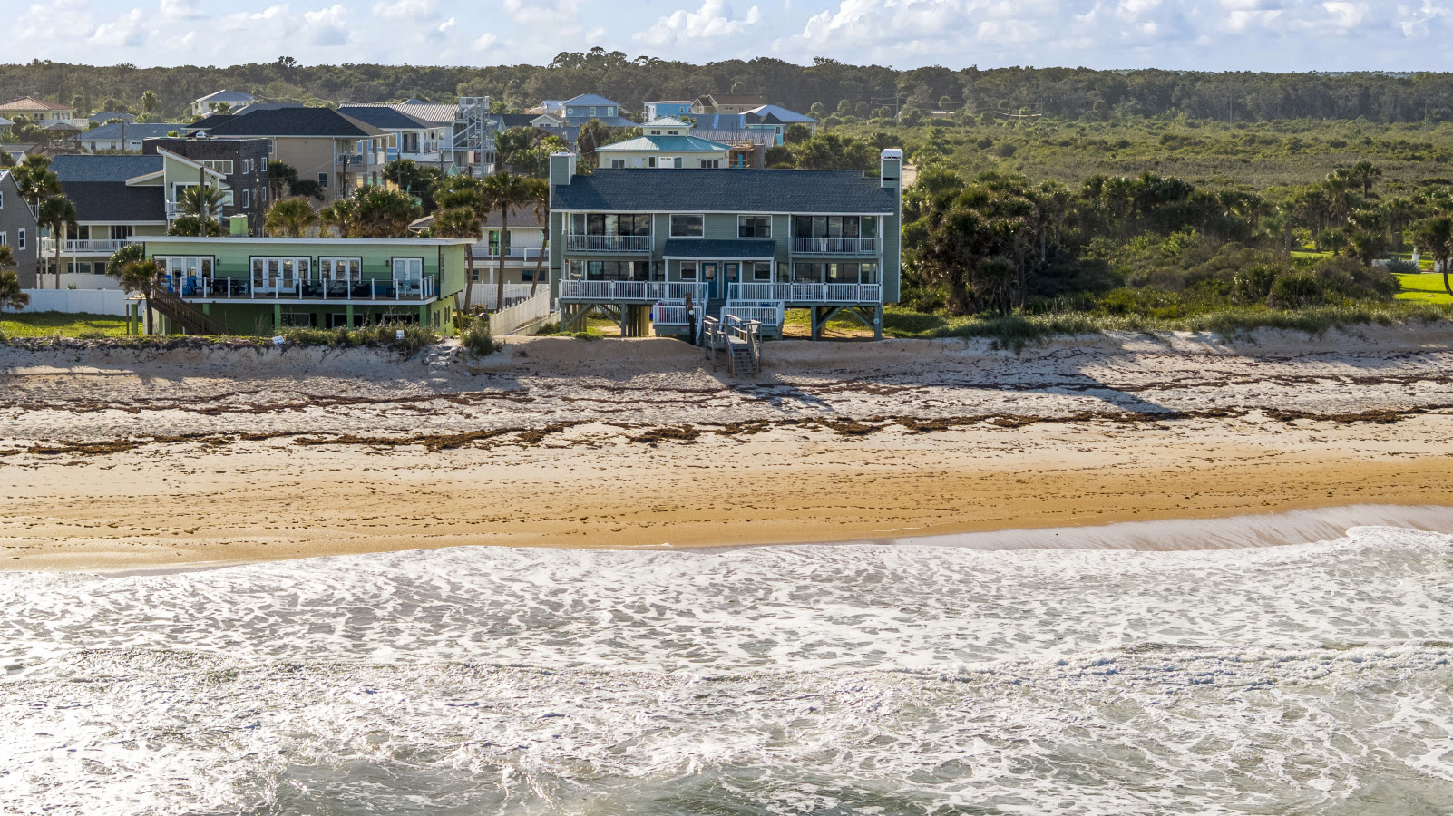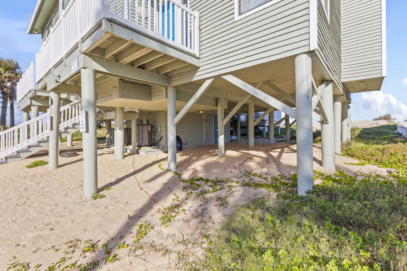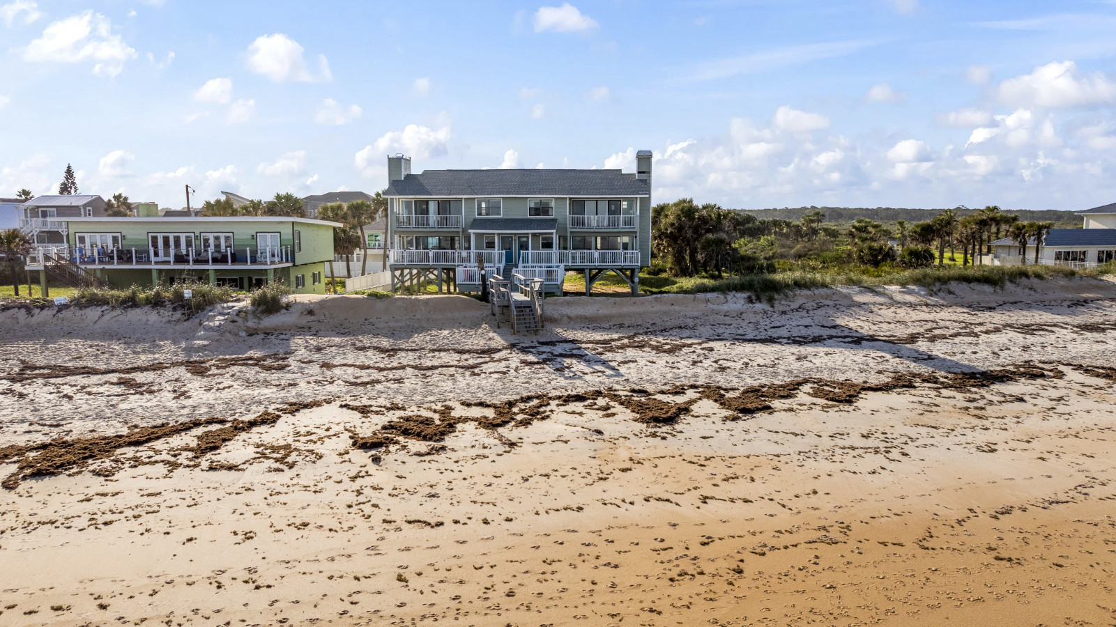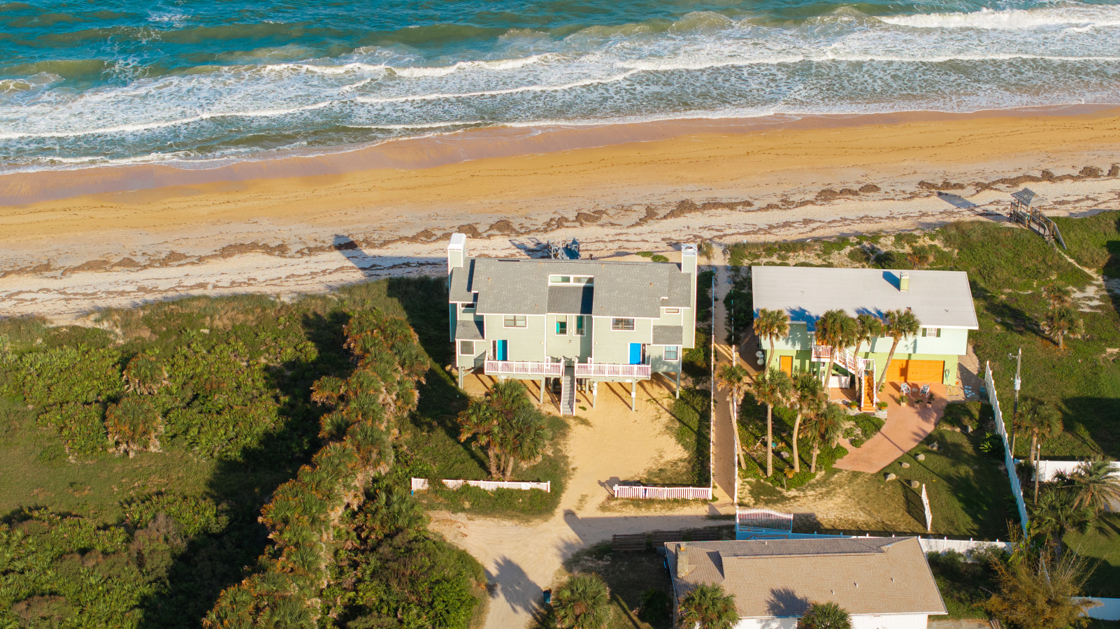 Nestled between Flagler Beach and St. Augustine, the home offers a private, dog-friendly stretch of beach with a serene coastal vibe. Sip your morning coffee while watching the sunrise, and unwind with a cocktail as the sun sets over the dunes.