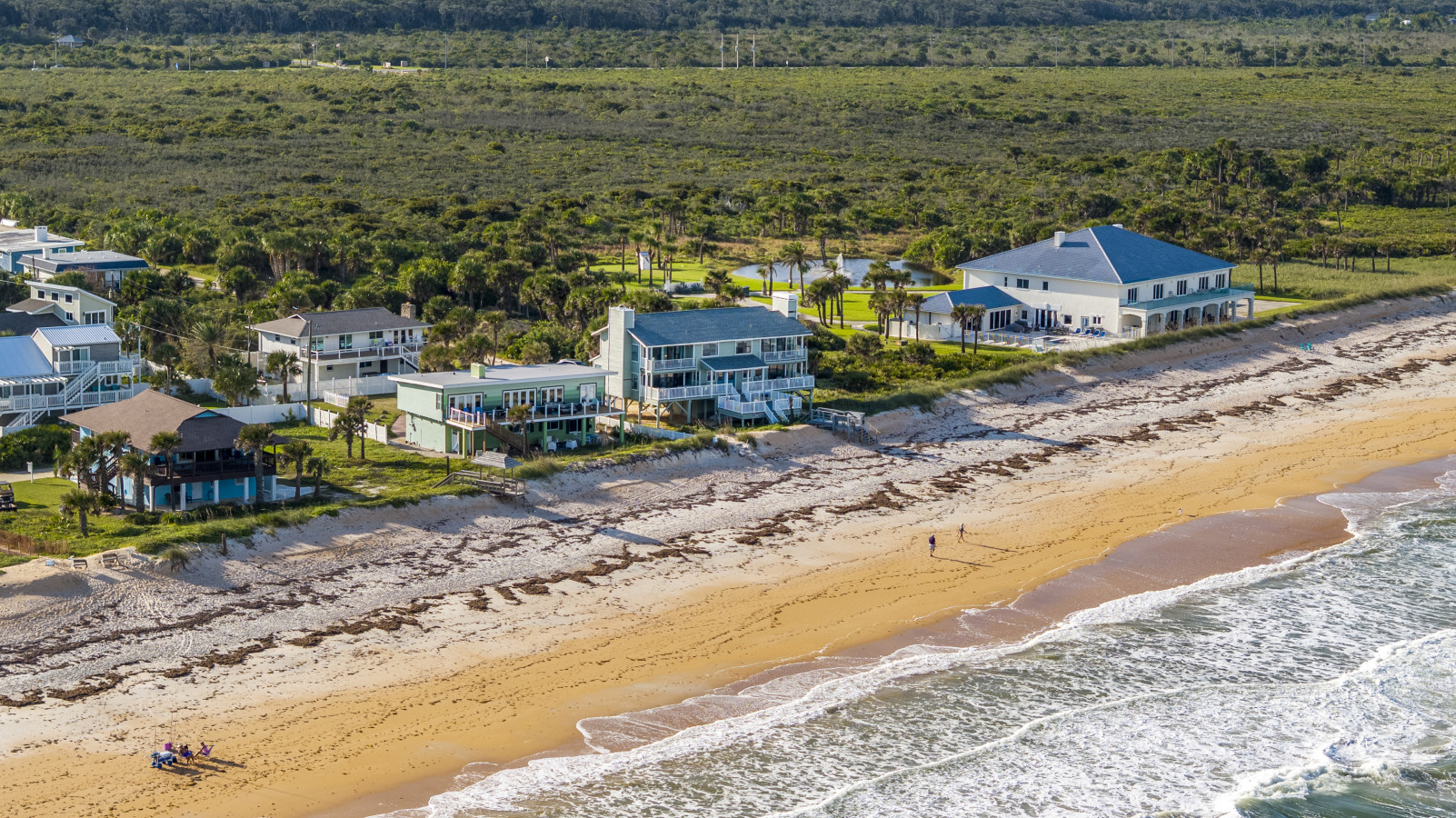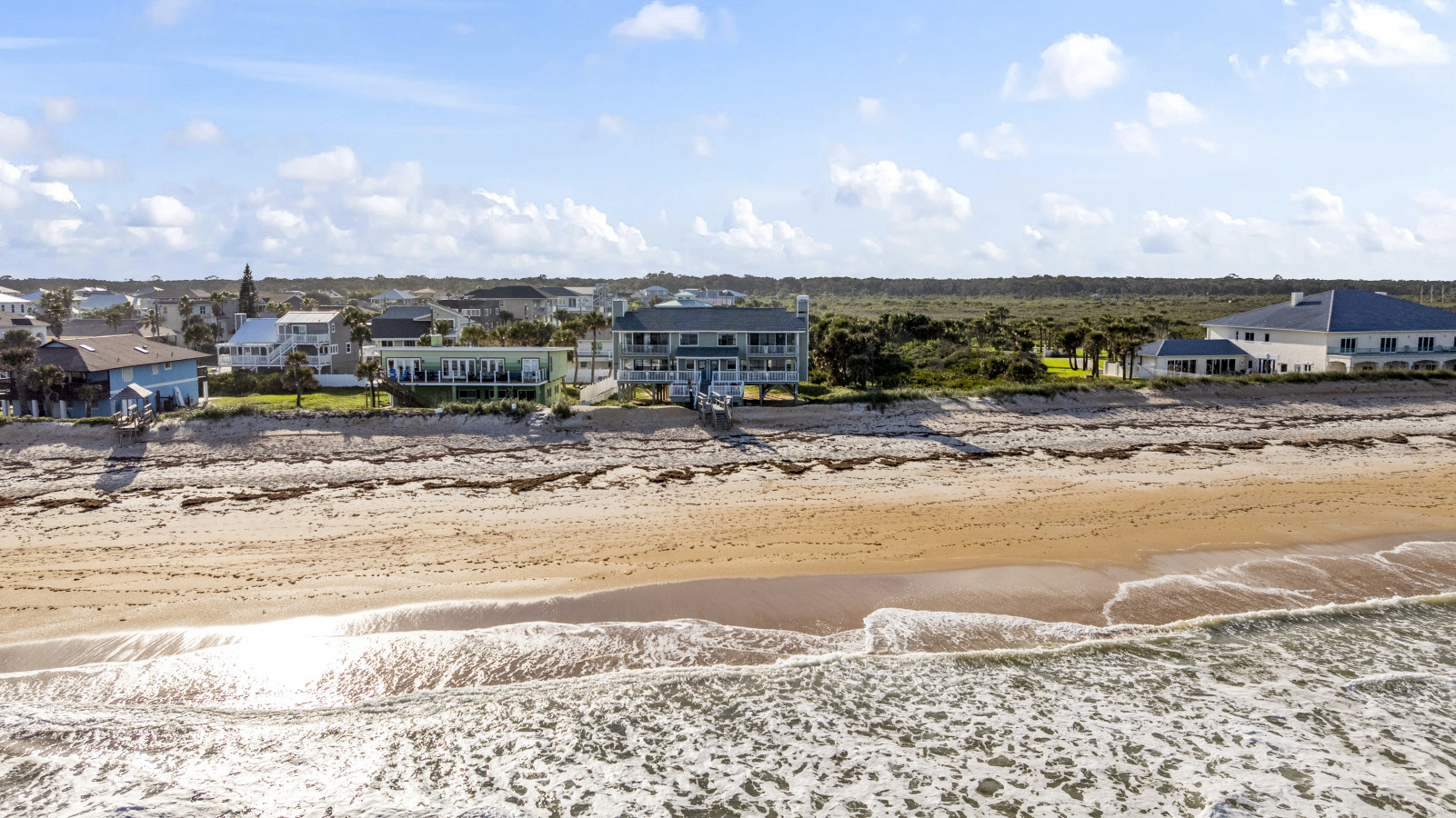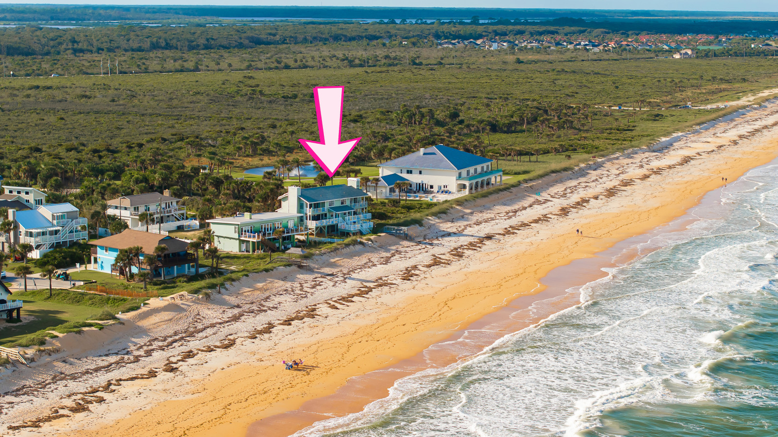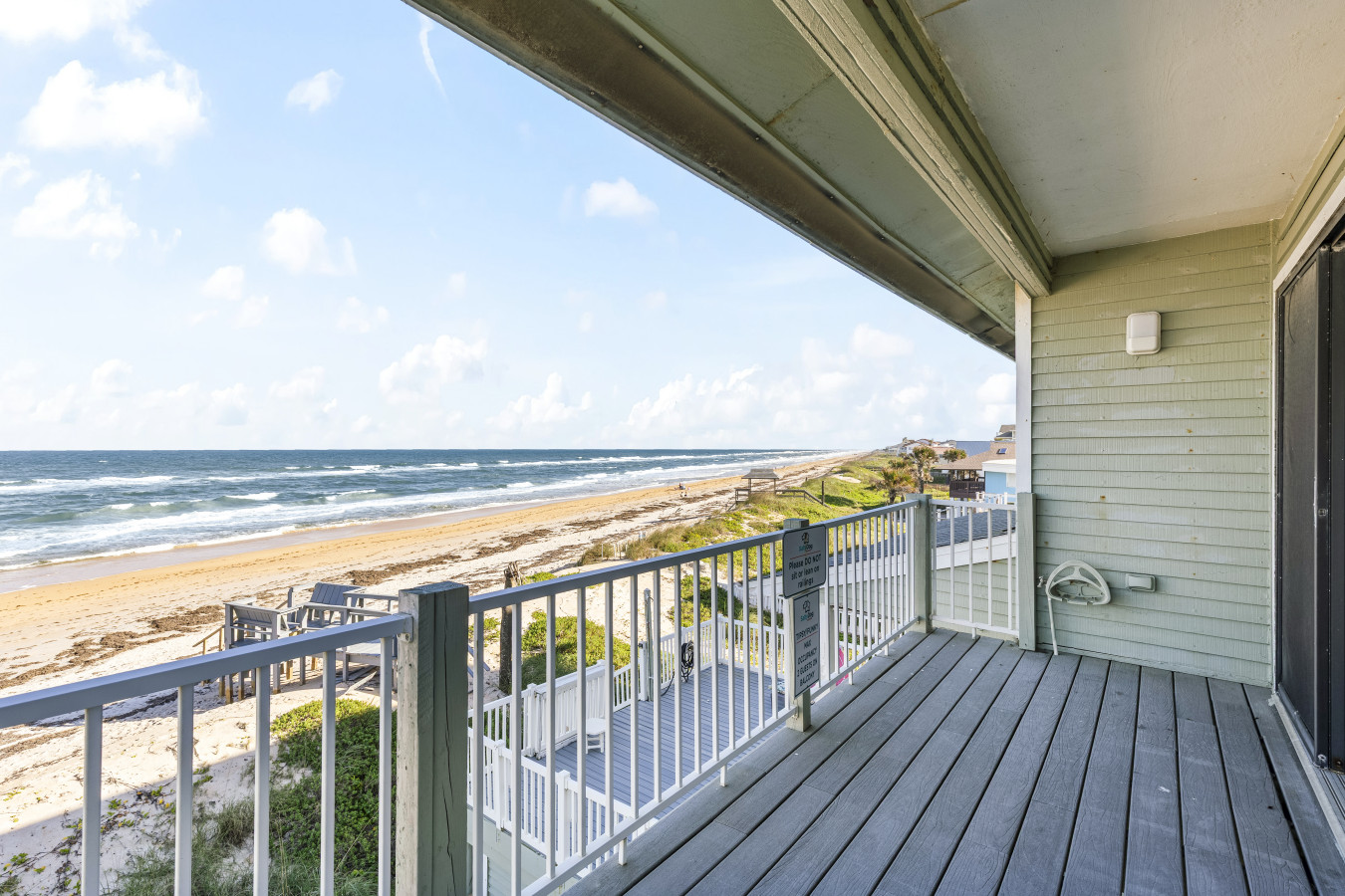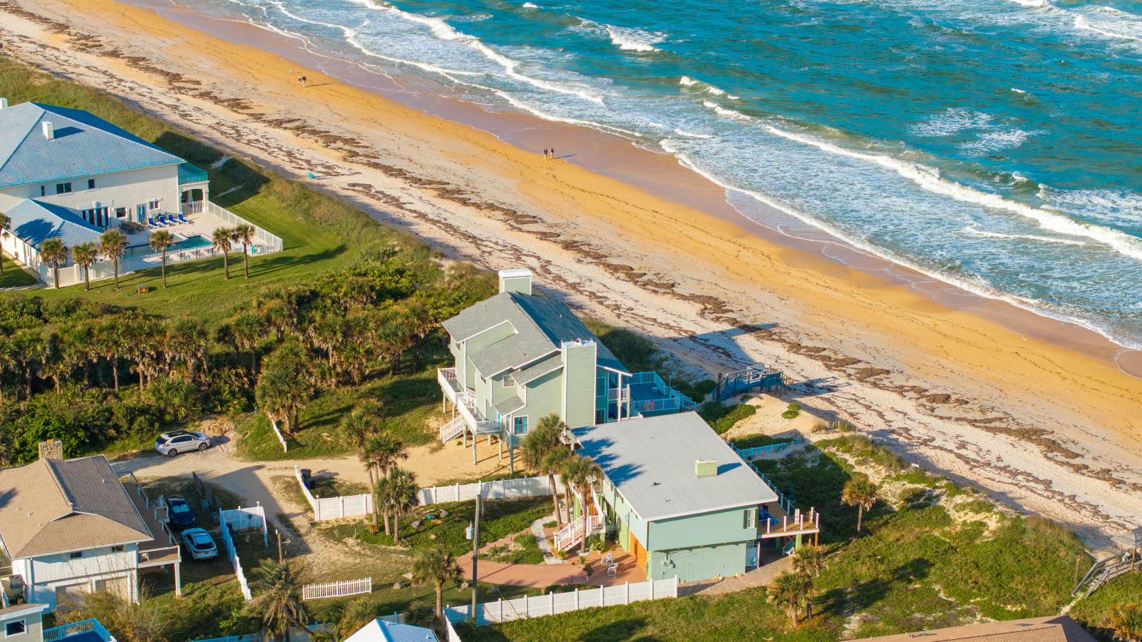 Nestled between Flagler Beach and St. Augustine, the home offers a private, dog-friendly stretch of beach with a serene coastal vibe. Sip your morning coffee while watching the sunrise, and unwind with a cocktail as the sun sets over the dunes.