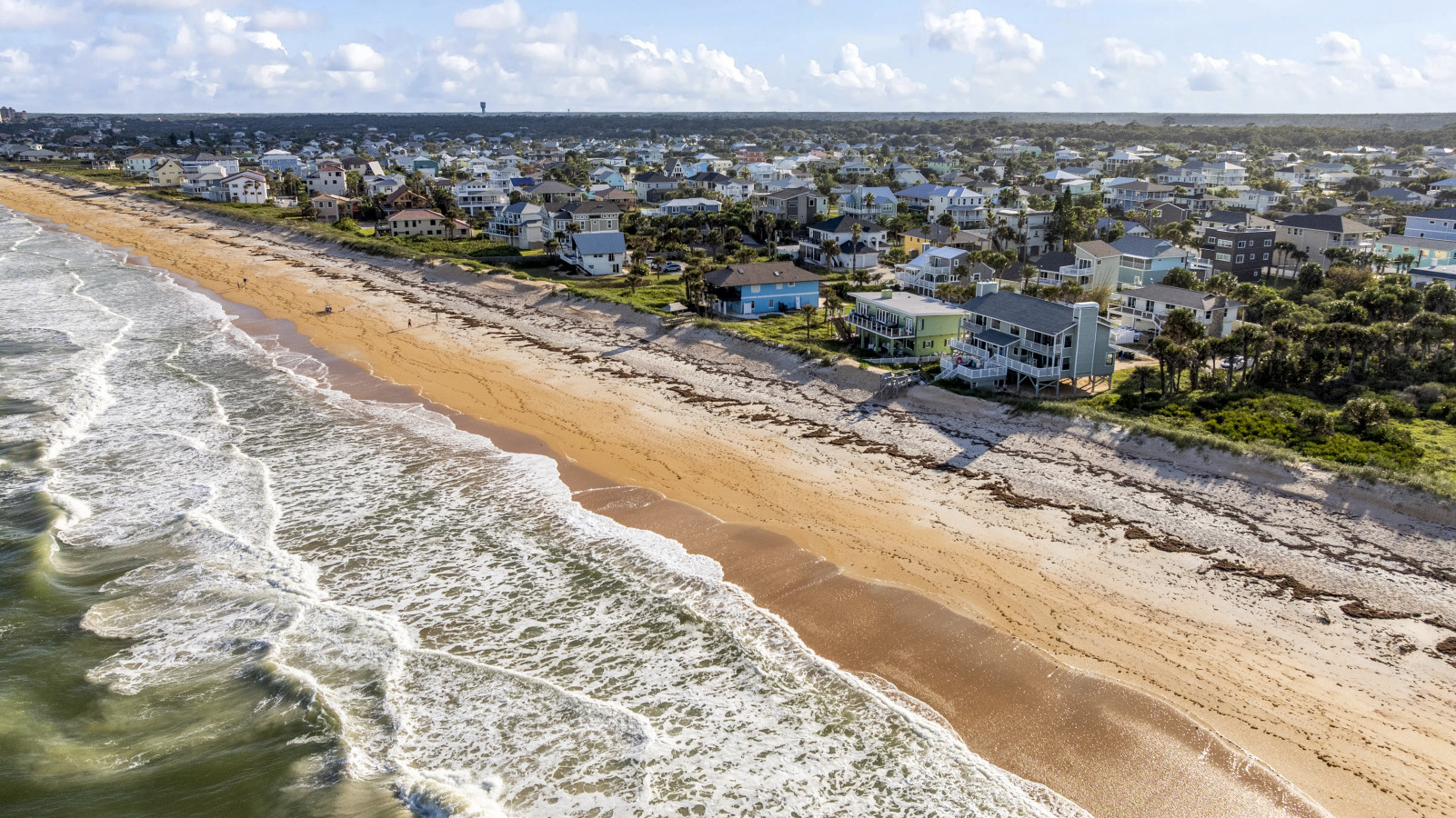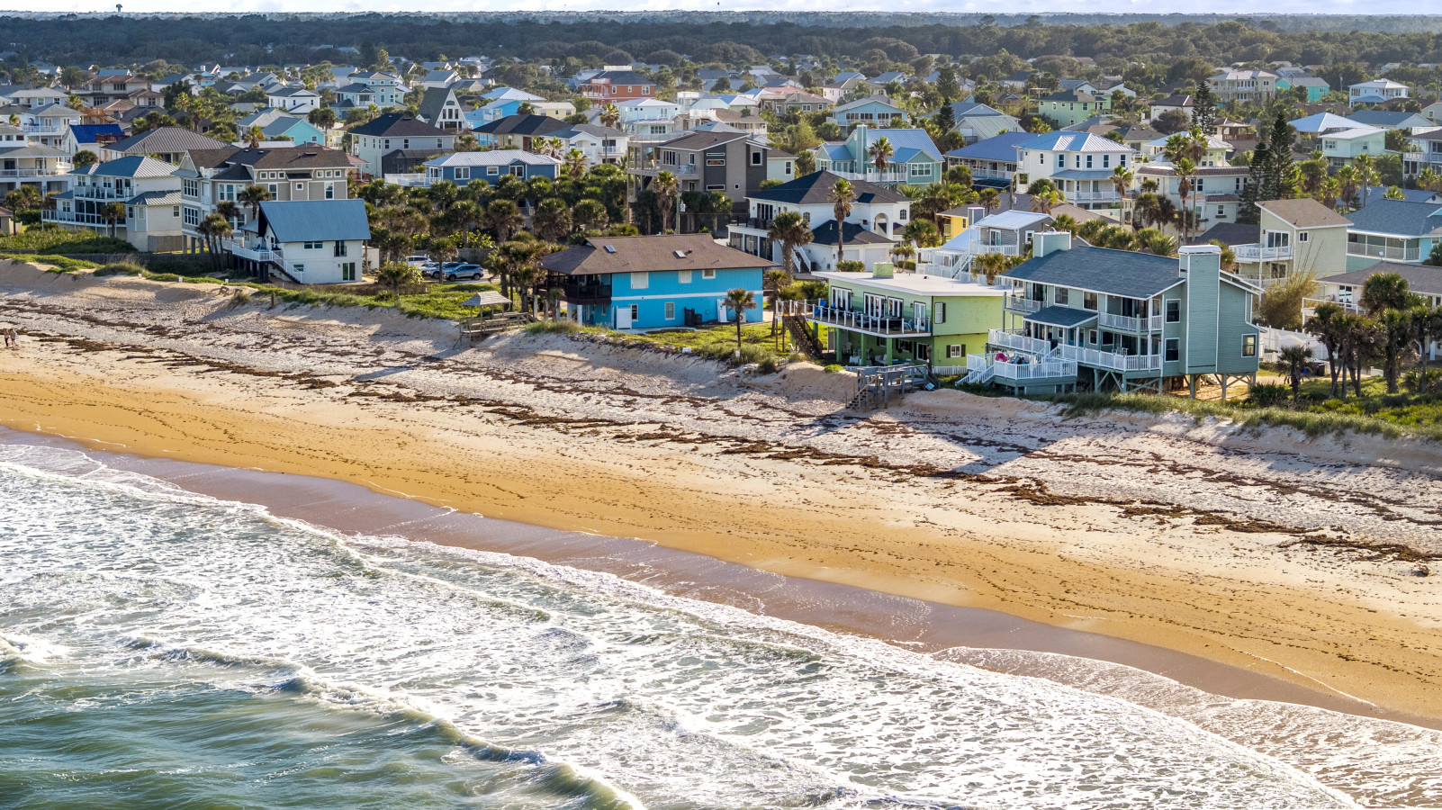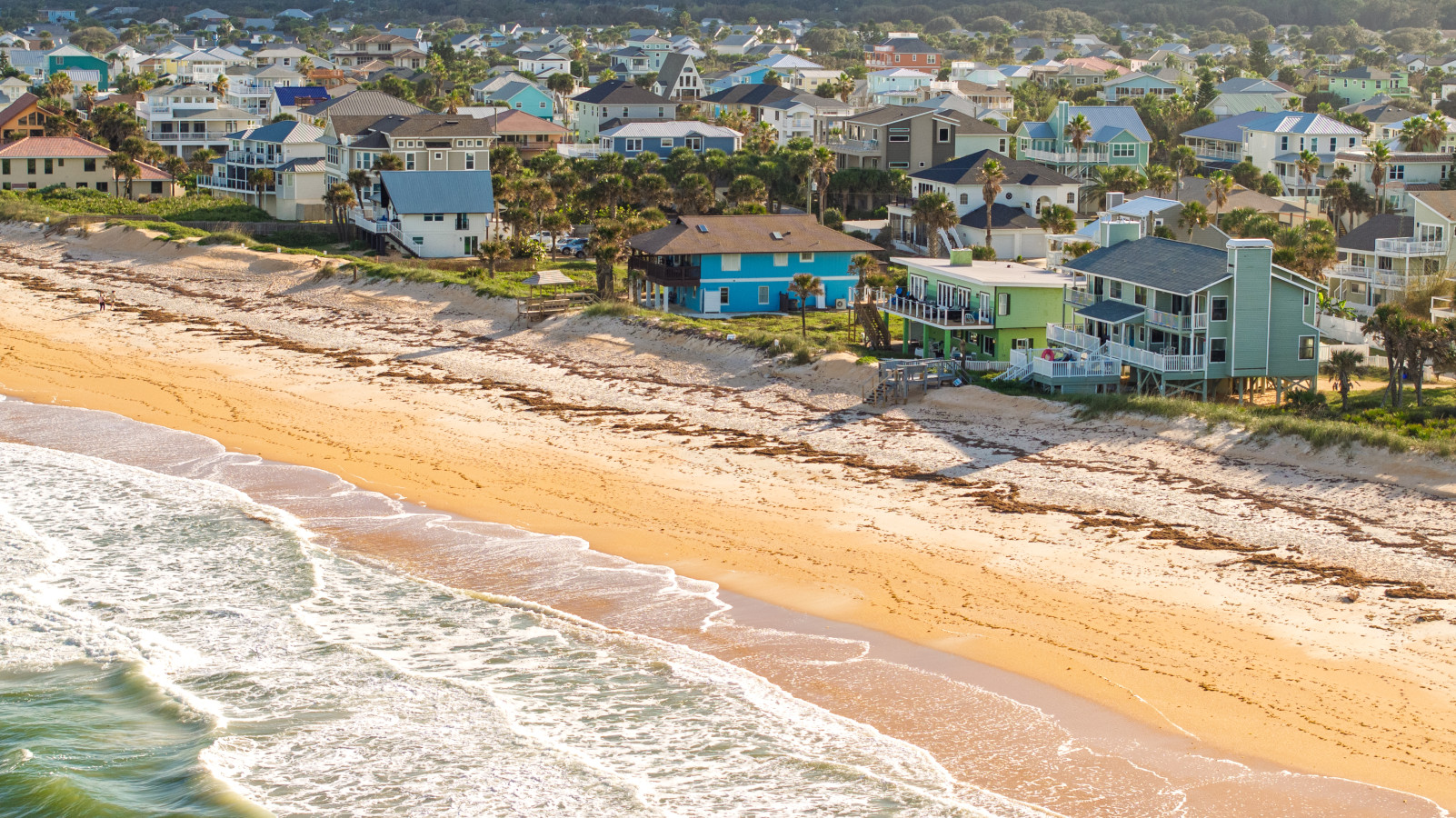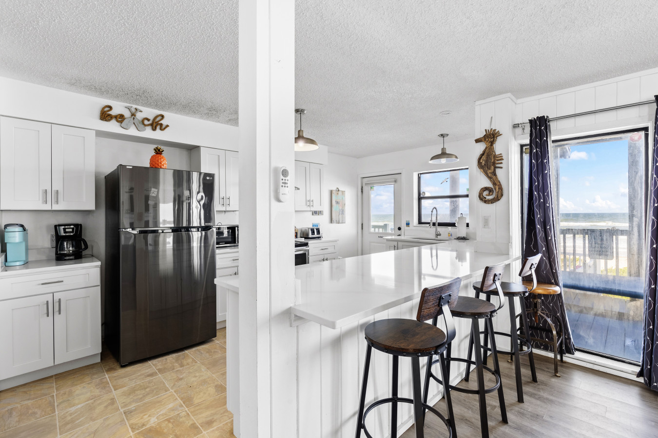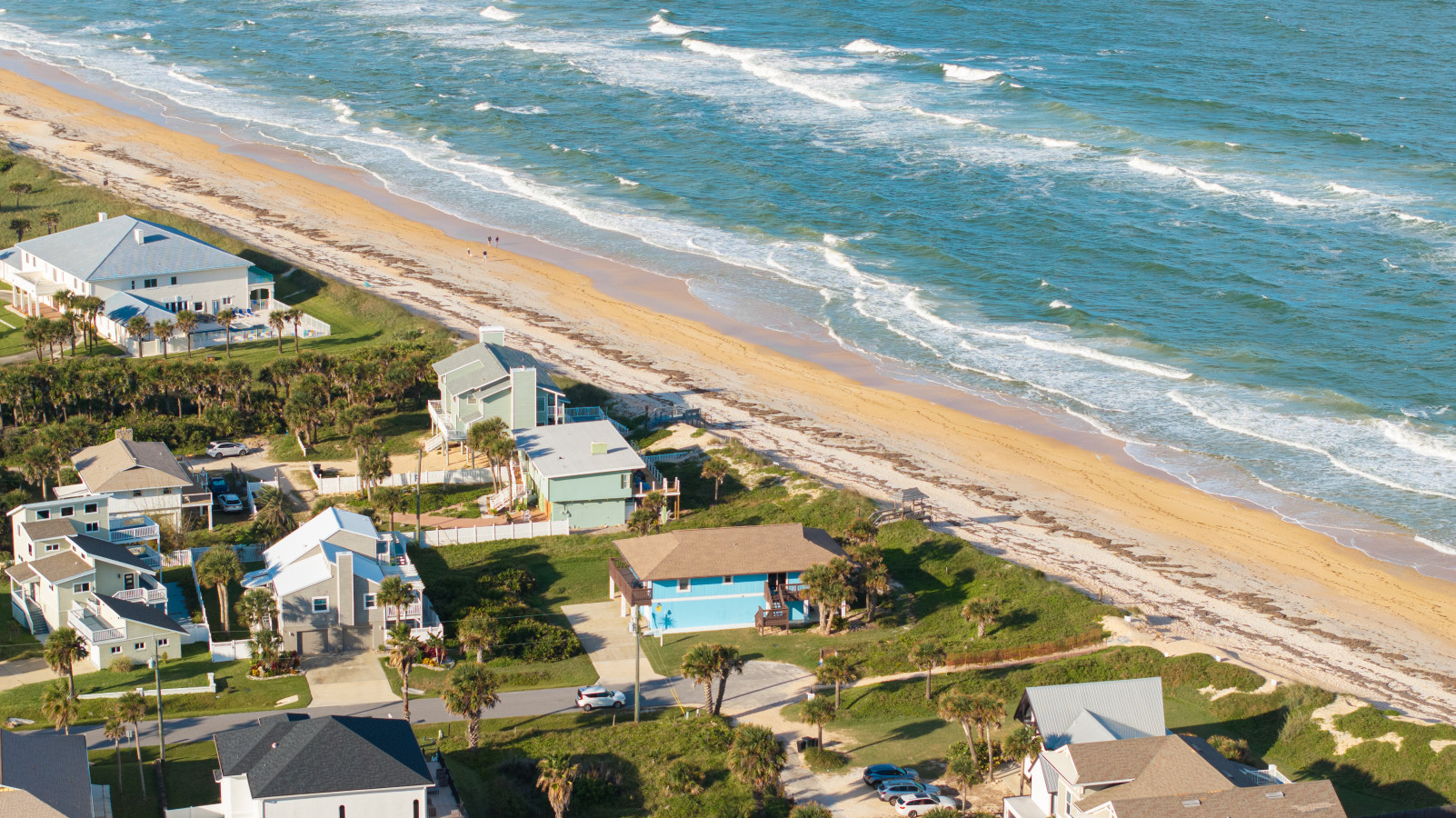 Nestled between Flagler Beach and St. Augustine, the home offers a private, dog-friendly stretch of beach with a serene coastal vibe. Sip your morning coffee while watching the sunrise, and unwind with a cocktail as the sun sets over the dunes.