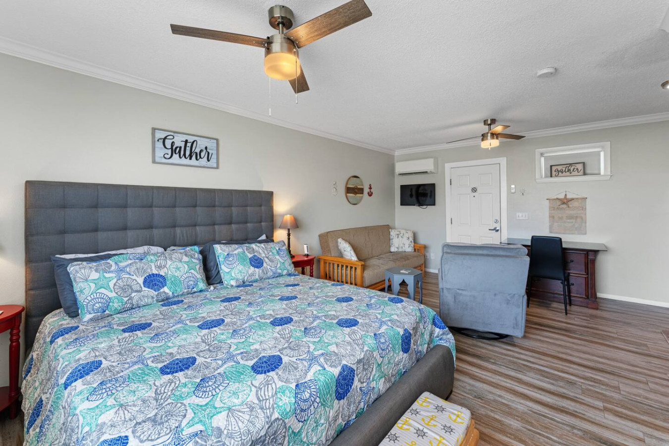 The location is excellent just a few blocks from the pier. You can walk to restaurants and to the beach. The condo was clean, however there was a slight mildew smell. The AC was not on when I arrived and the room was very muggy.If you have allergies or bad knees may not be the best spot. It’s on the second floor and a bunch of stairs. Not much of a view, but you can see the ocean. Nice pool. Could sit outside your door but no view just of the complex. Complex is old, but the room was redone. The location was the best thing about this place. It was clean & the bed was good.Anonymous - Posted: 3/4/2024