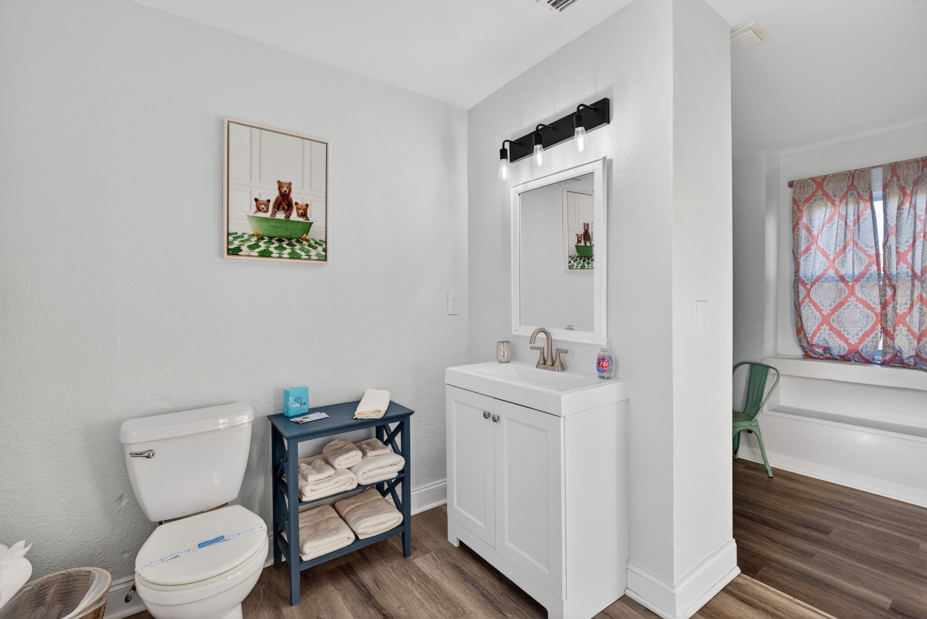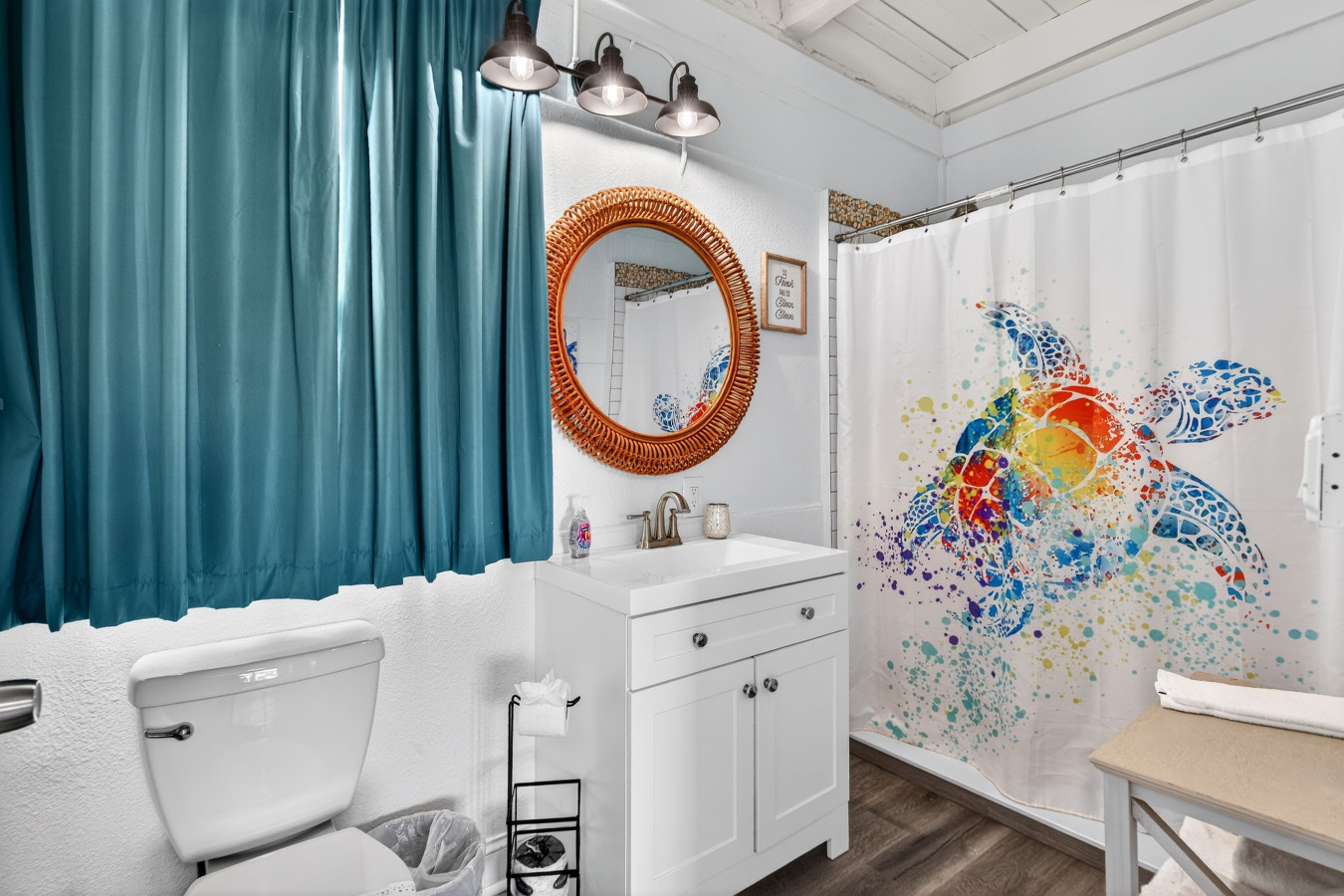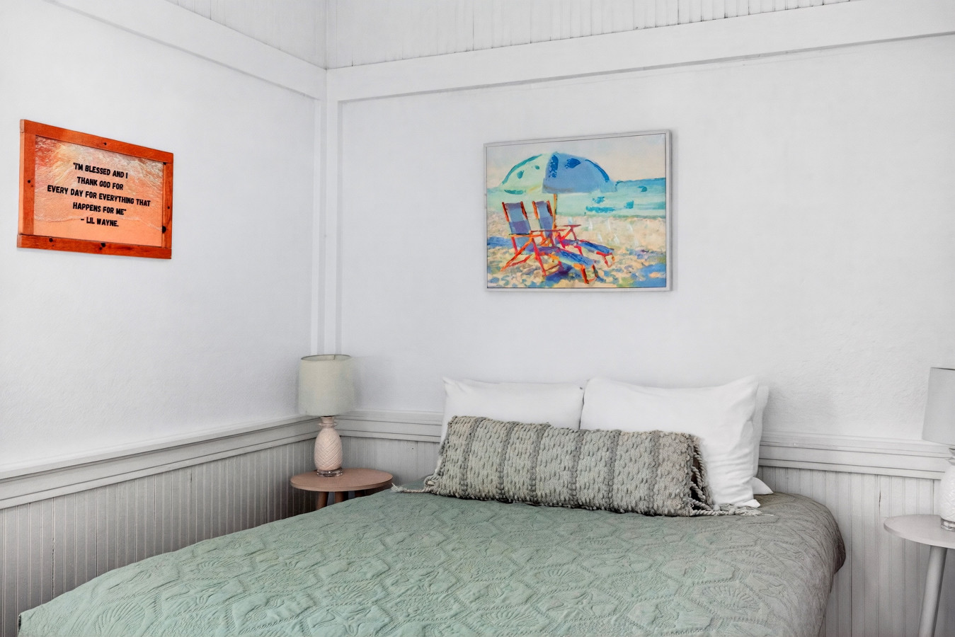 Just a bike ride away from the beach! Very clean, multiple outdoor spaces to enjoy, extra towels, kitchen tools, grill, etc., & the only complaint is how hot the downstairs area stays.Joshua K - Posted: 6/18/2022