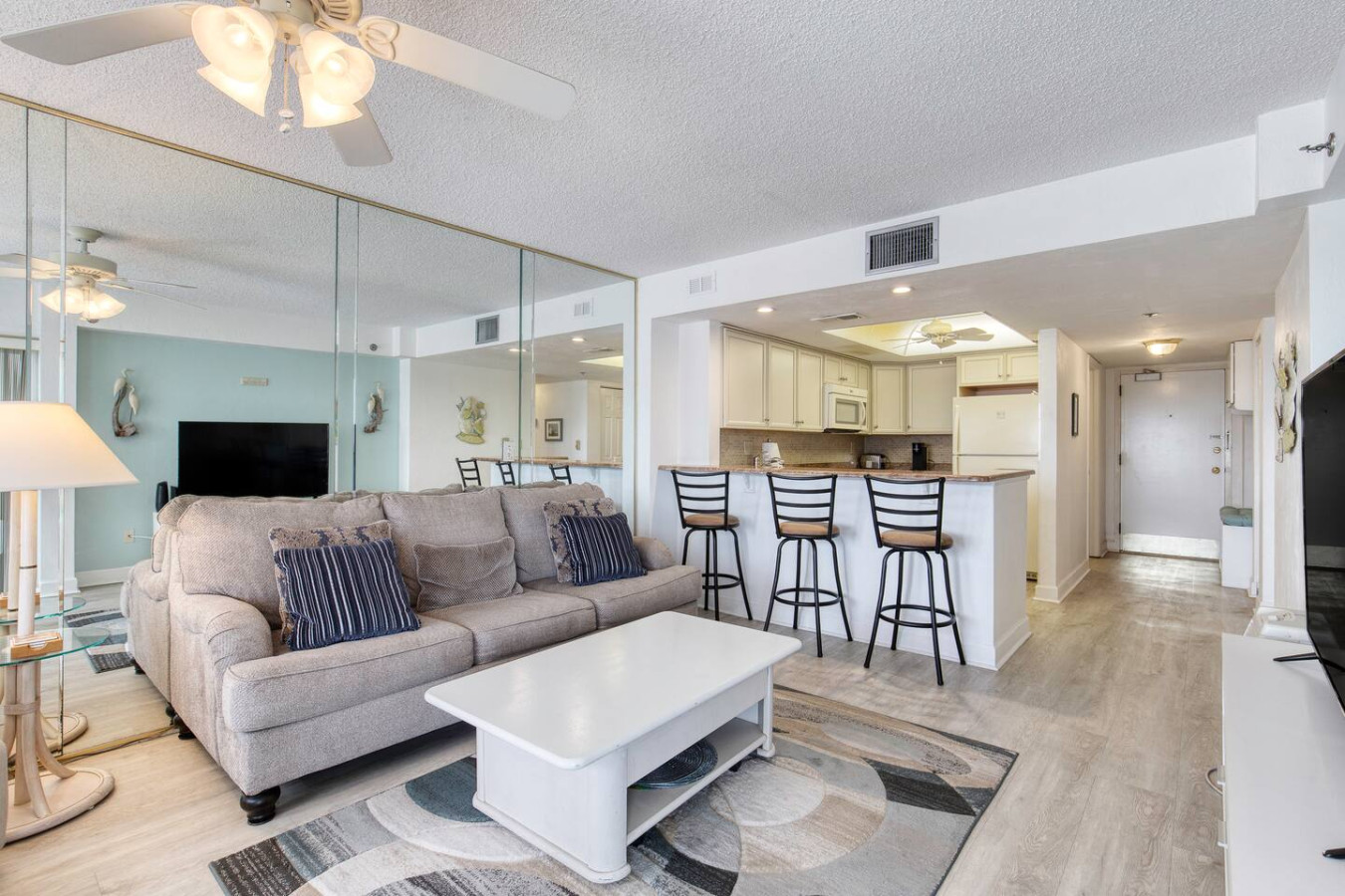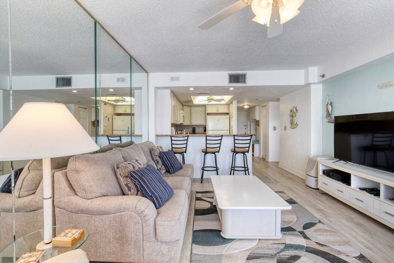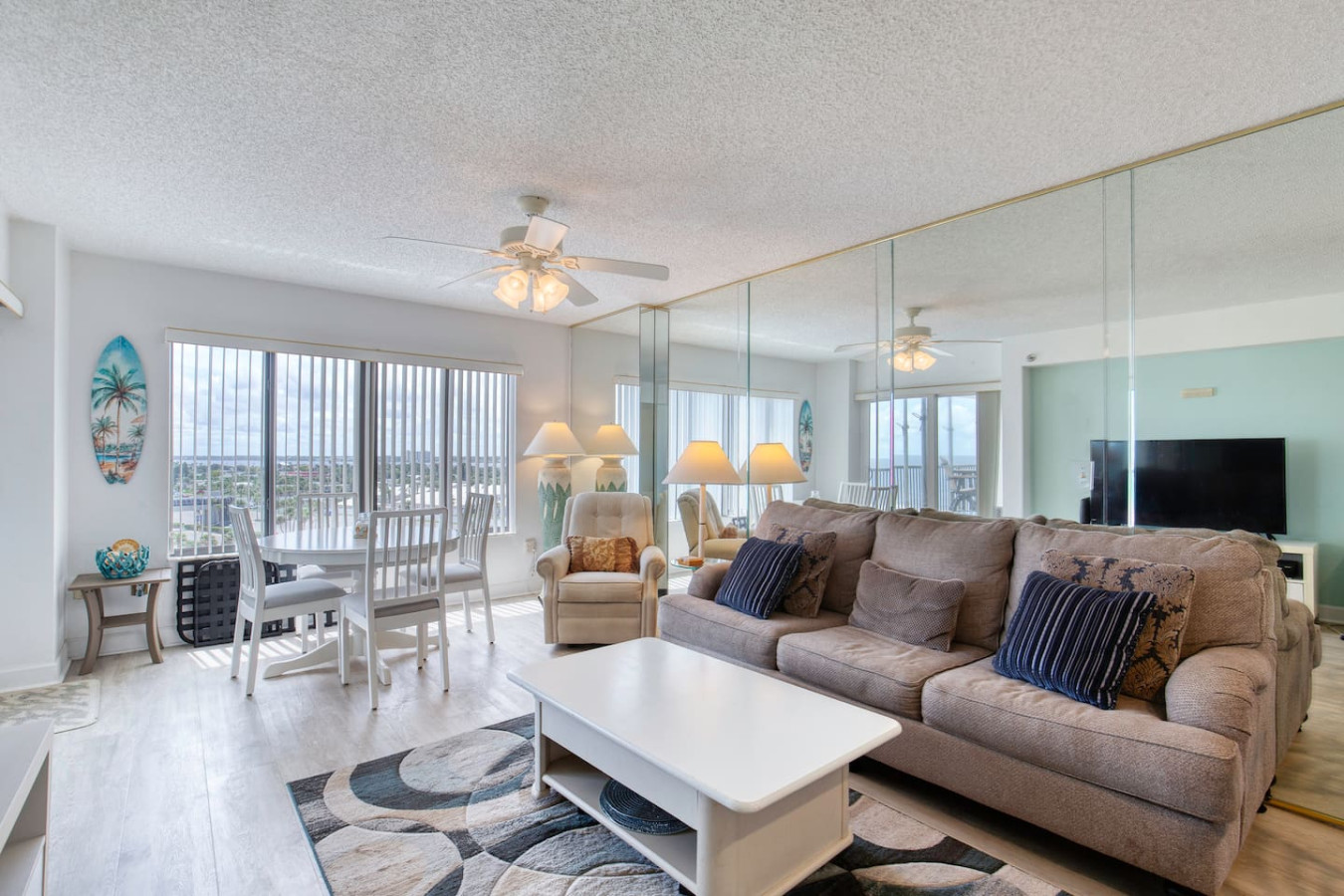 This playful 2-bedroom, 2-bath condo at Sandpoint puts you right where you want to be: steps from the sand with an oceanfront pool waiting for you after a beach day.