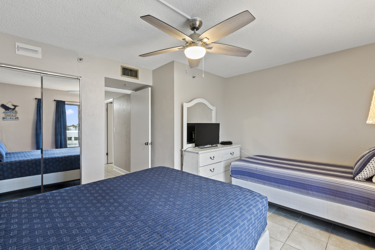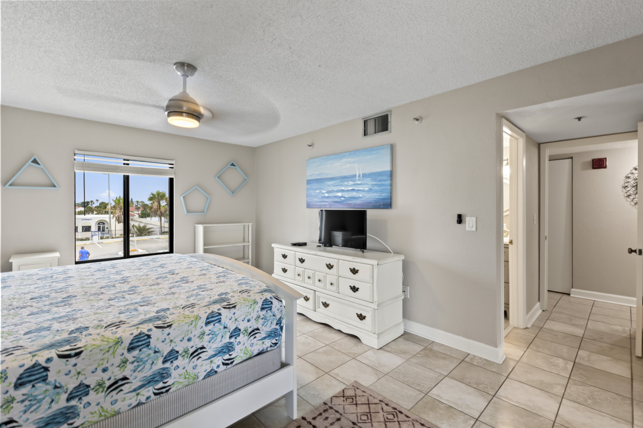 We enjoyed our stay overall. The building is kind of old, but the people were nice and so was the pool and the beach access. Some of the furniture in the condo really needs replacing, and the bath towels. It would have been nice to have a more comfortable couch in the living room to watch movies on and the recliner chair desperately needs replacing. The kitchen and bathrooms were nice and redone, and the master bed was comfortable. The ceiling fan in the master was not usable as it shakes like it's about to fall off the ceiling and makes terribly loud noises when on. For the price, I felt it was worth the money, and we had fun. However, I probably would not rent this unit again unless some updates took place. Salty was responsive and check in and out was an easy process.Jamie B - Posted: 6/2/2021