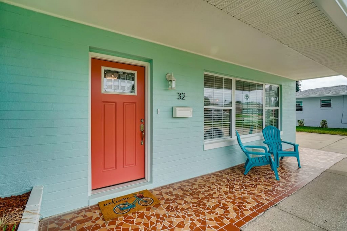 Quintessential Florida beach bungalow, with 2 bedrooms, 2 baths, outdoor shower, washer dryer, huge fully stocked kitchen, large living room dining room combo with queen air mattress, fully fenced in yard. 5-min walk to the beach.