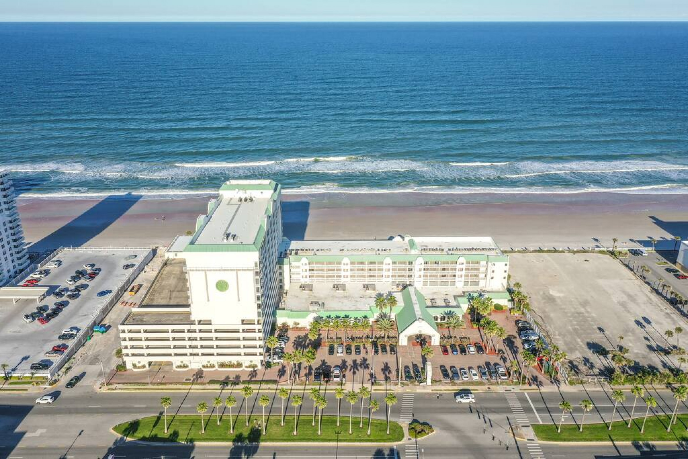 ***INDOOR POOL AND ONE OUTDOOR POOL , PARKING GARAGE, TIKI ARE CLOSED. BAR AND BEACH ACCESS FROM POOL DECK CLOSED DUE TO HURRICANE DAMAGE, NO RE-OPEN DATE AT THIS TIME PARKING GARAGE CLOSED SO PARKING WILL EITHER BE IN LOT AT BUILDING OR IN CONTRACTED LOT ON A1A. PLEASE SEE PICS OF PARKING DIAGRAM IN LISTING. Please note, prices have been discounted to reflect current status of building. NO FURTHER DISCOUNTS OR REFUNDS will be given to stay due to lack of amenities, condition of building, and parking situation. We cannot be help responsible if lots get full*****