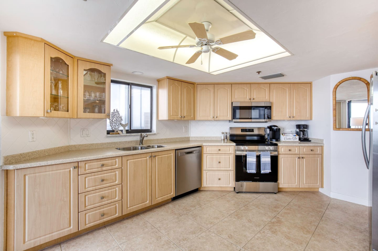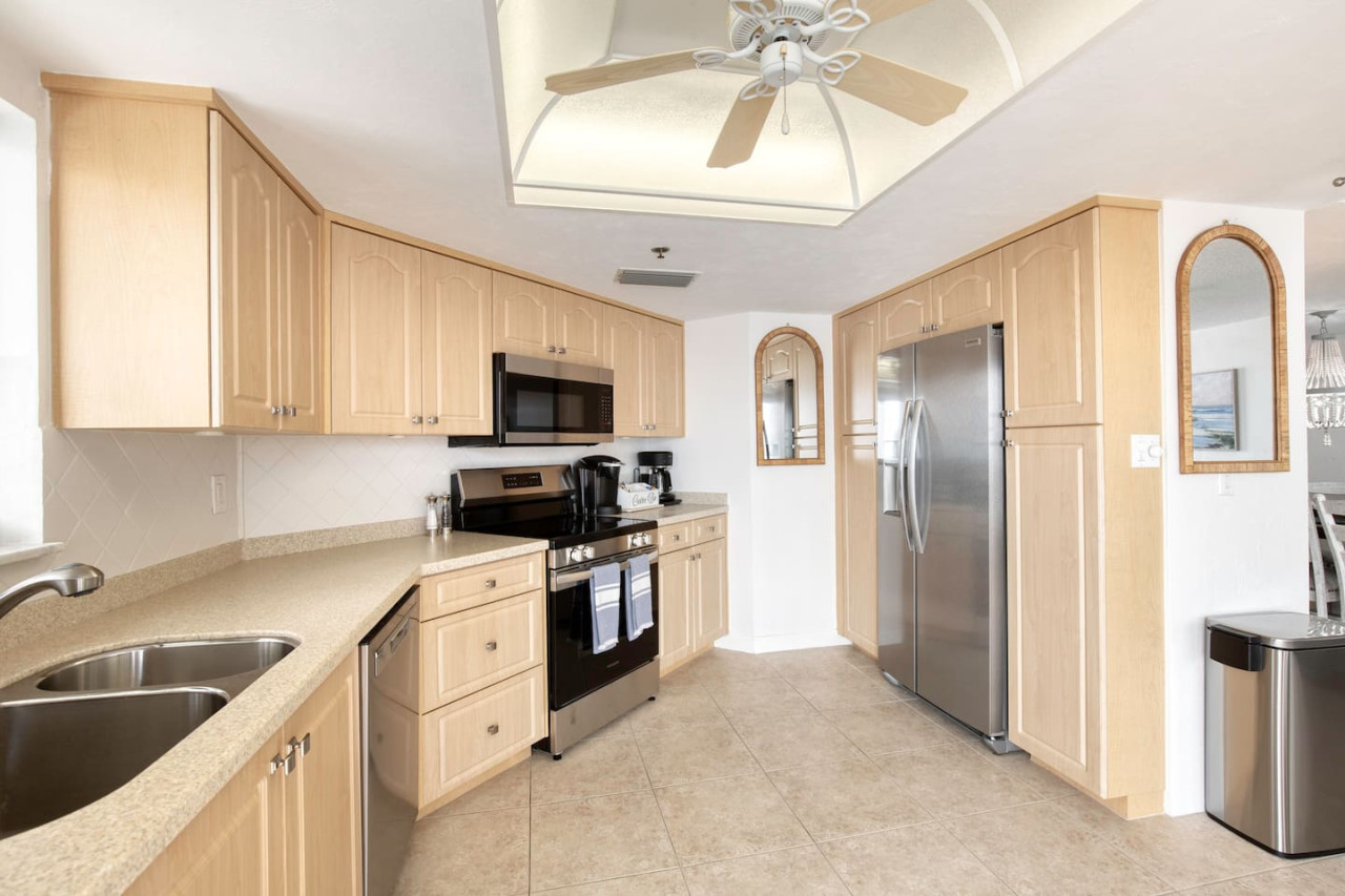 The condo's kitchen is equipped with new appliances, providing everything necessary for culinary adventures—from brewing morning coffee to preparing refreshing drinks.