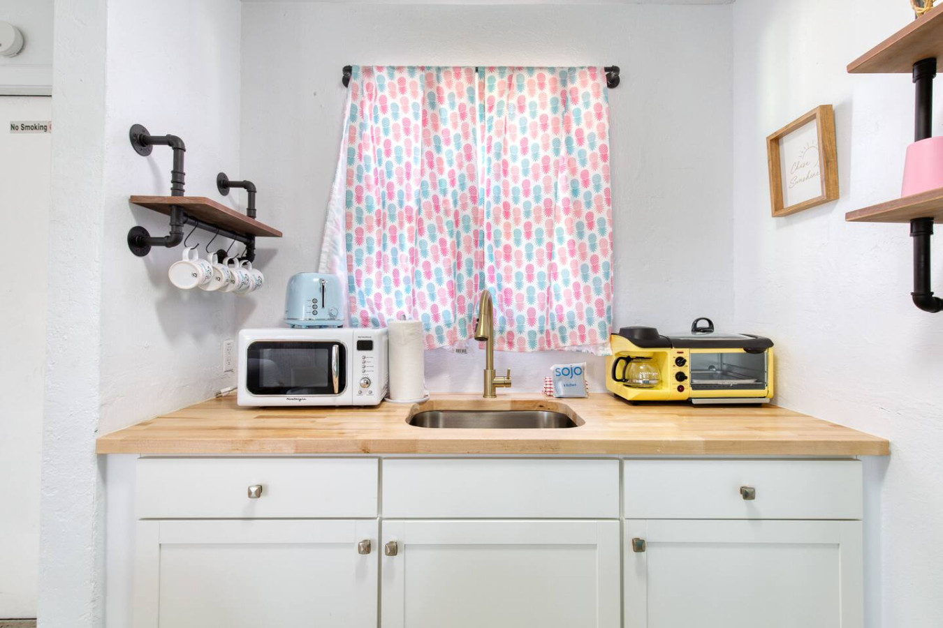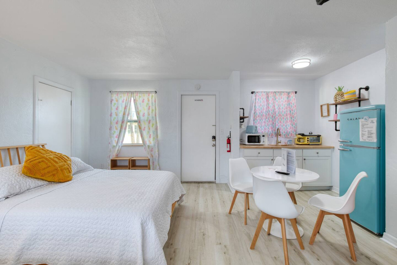No smoking inside the room or near room with door or window open. Please note, any indication of smoking inside the room or near room where smoke smell (any type-cigs or weed) can get in the room will result in eviction without question and forfeiture of security deposit. We are sticklers on this as we worked hard to make this a beautiful building and don't want it stinky. Just smoke outside away from the doors. We do require a credit card on file with Salty Dog Vacations, the managers of the inn. We will put a $200 security hold on the card during your stay as smoking in units is a big issue in Daytona and we are really protecting against this. If you use a credit card, you won't even notice as the card would only be charged if the smoking rule was violated, however, if you use a debit card/bank card you will see the charge pending as a hold on the funds until a couple days after check out so we just want you to know as we will never keep your funds unless the rule violated, but every bank takes different amounts of days to take the hold off.
