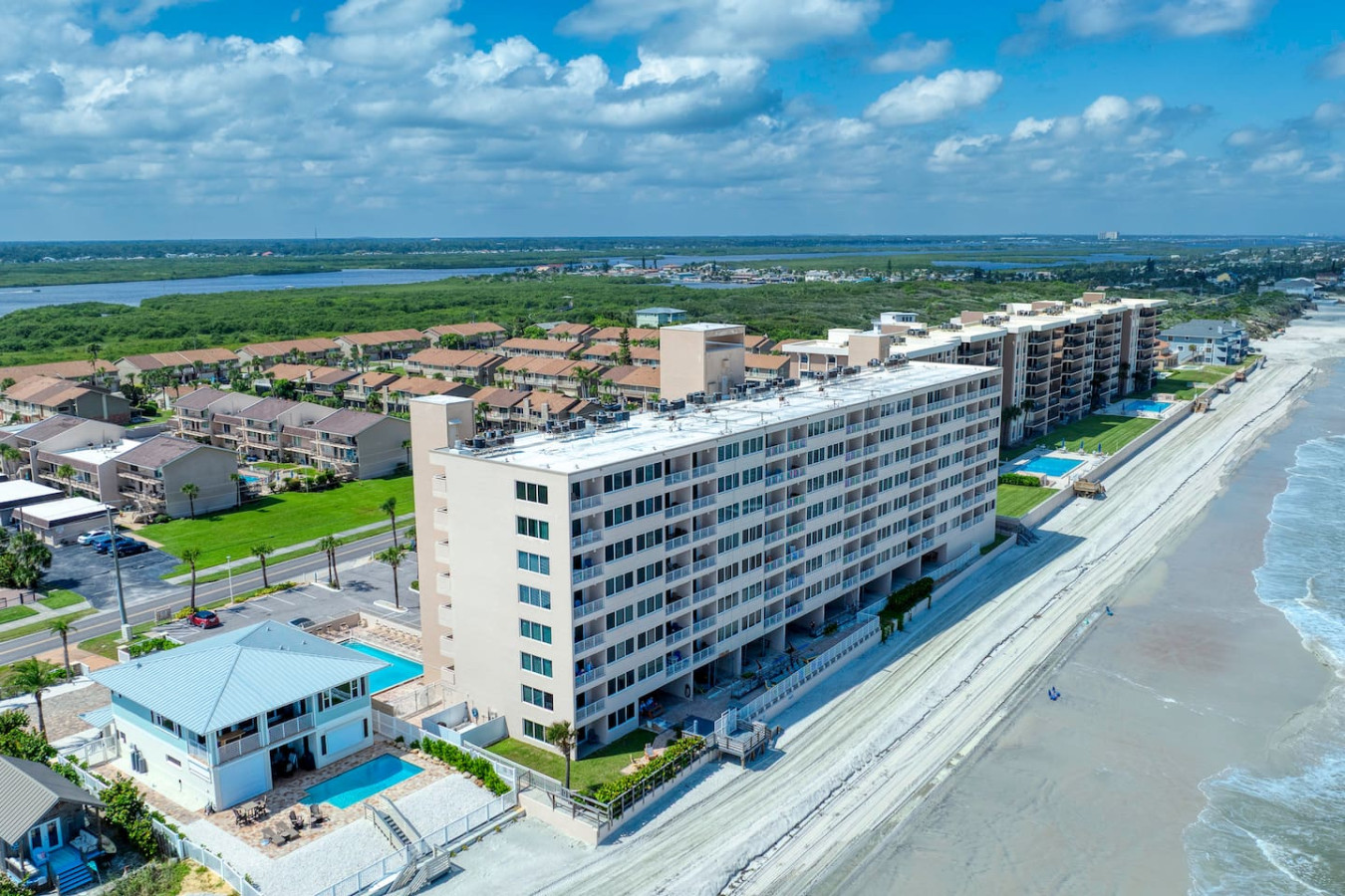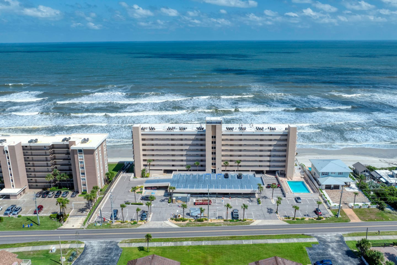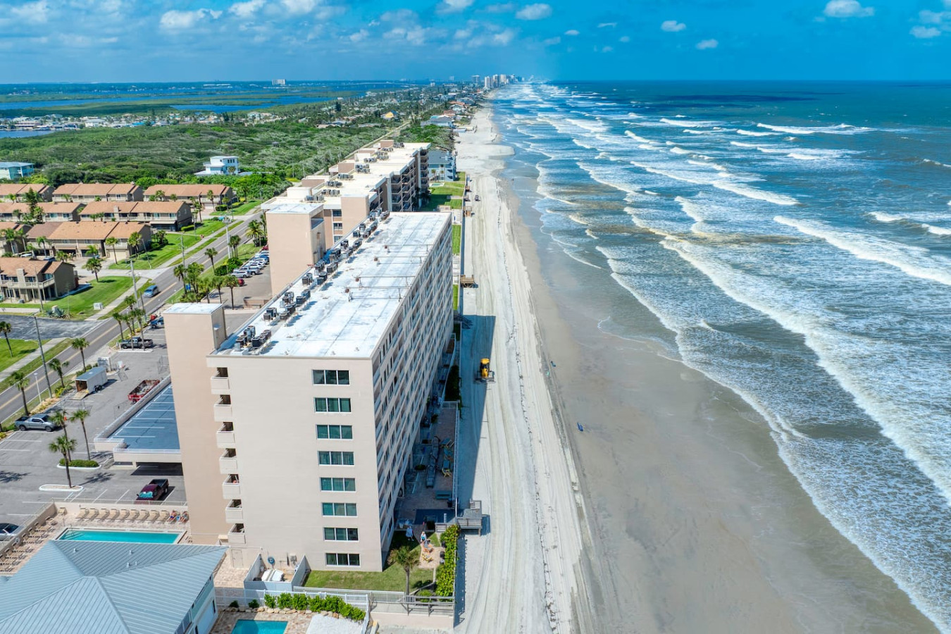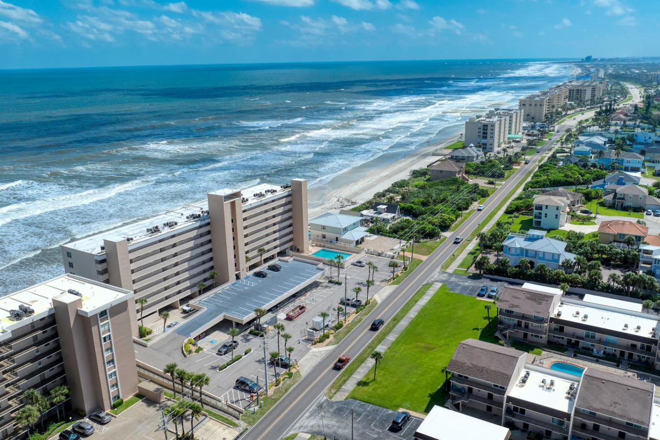 Your getaway begins where the ocean meets relaxation. This Ponce Inlet condo offers direct beach access, a resort-style pool, and a private balcony overlooking the Atlantic. Inside, you’ll find an airy open layout, coastal décor, and everything you need for a carefree stay — from a fully stocked kitchen to plush bedding and beach gear. Spot dolphins at sunrise, unwind poolside, and fall asleep to the rhythm of the waves.