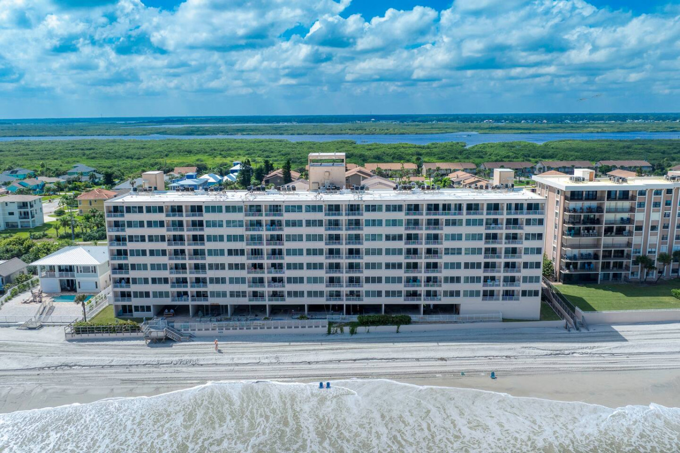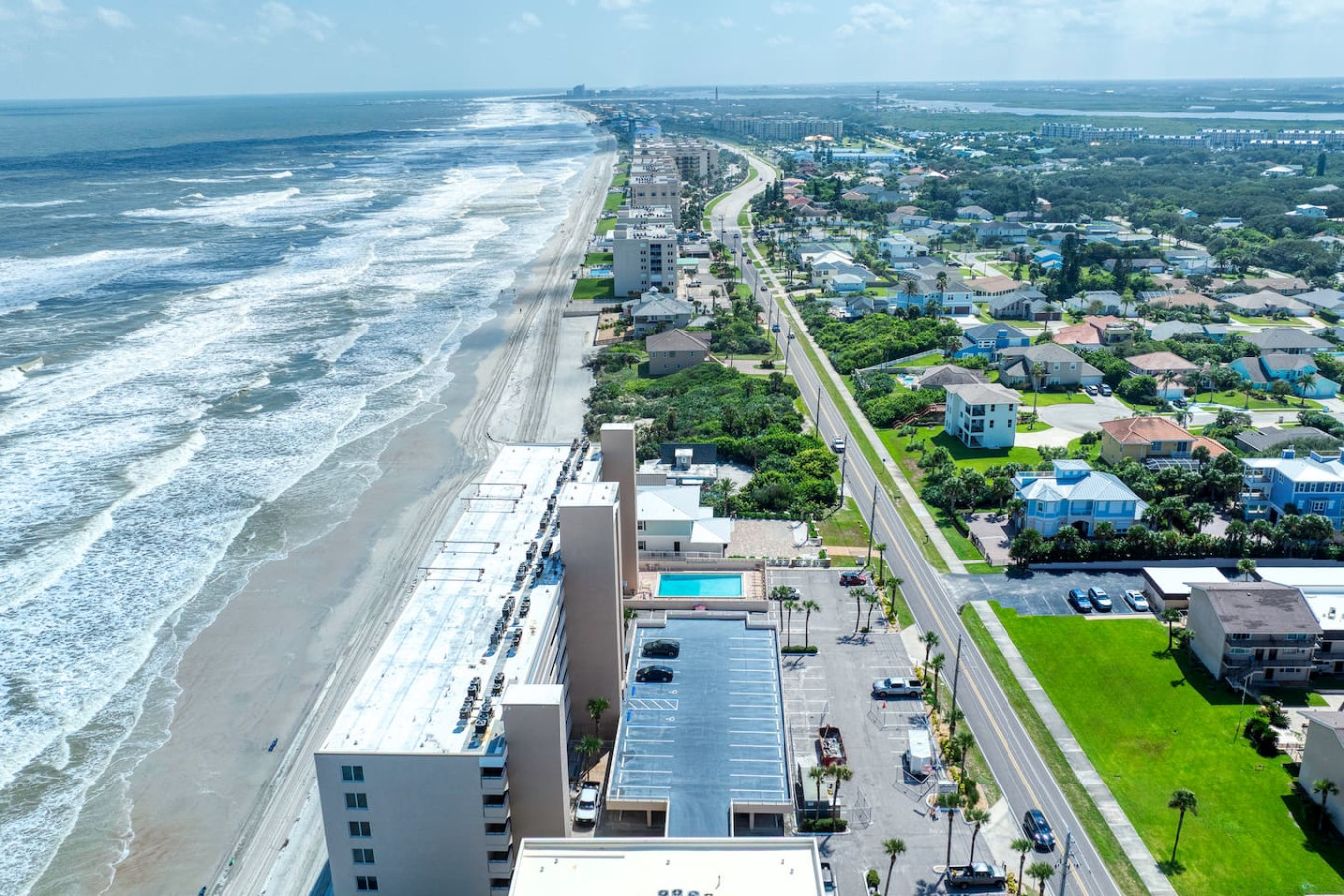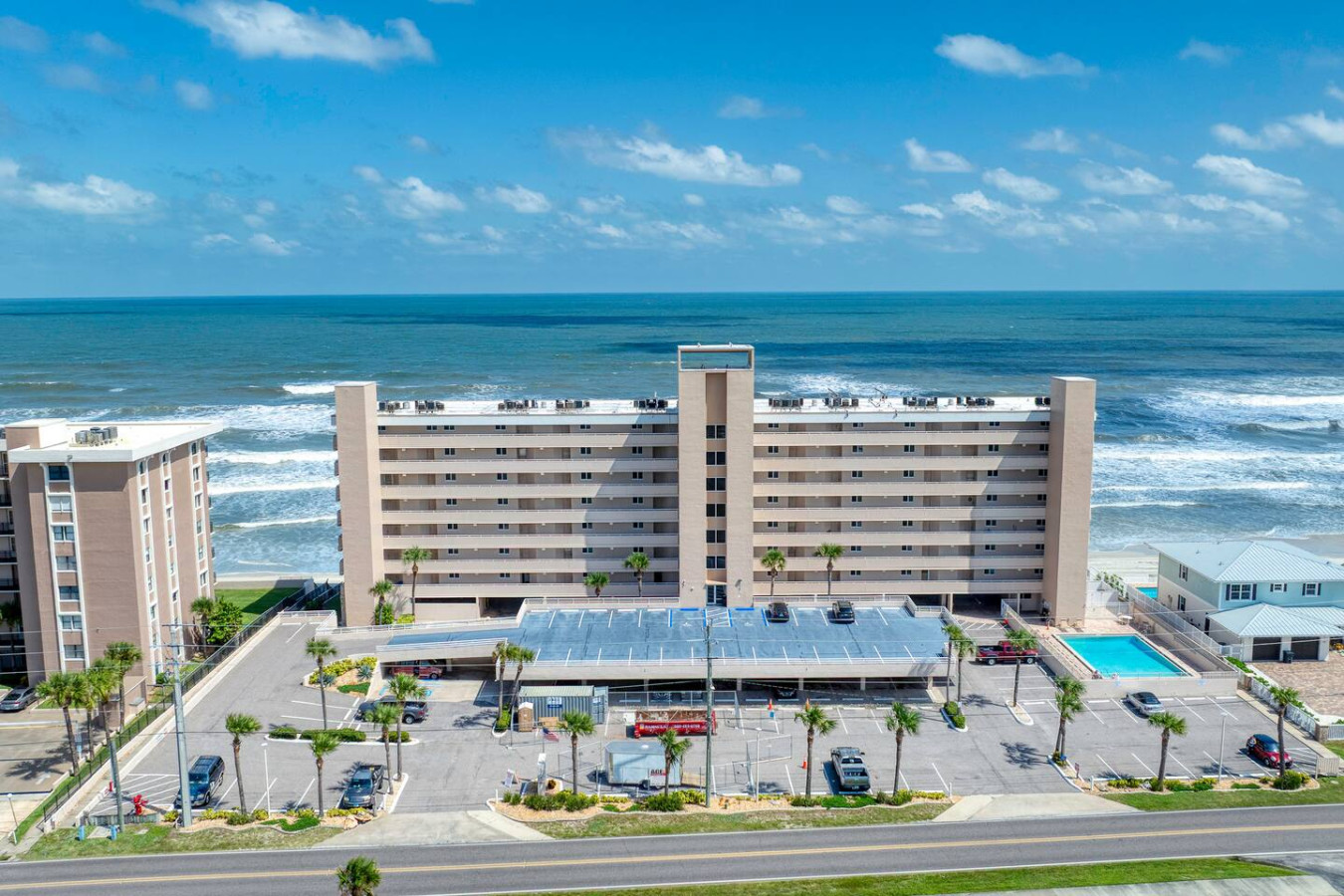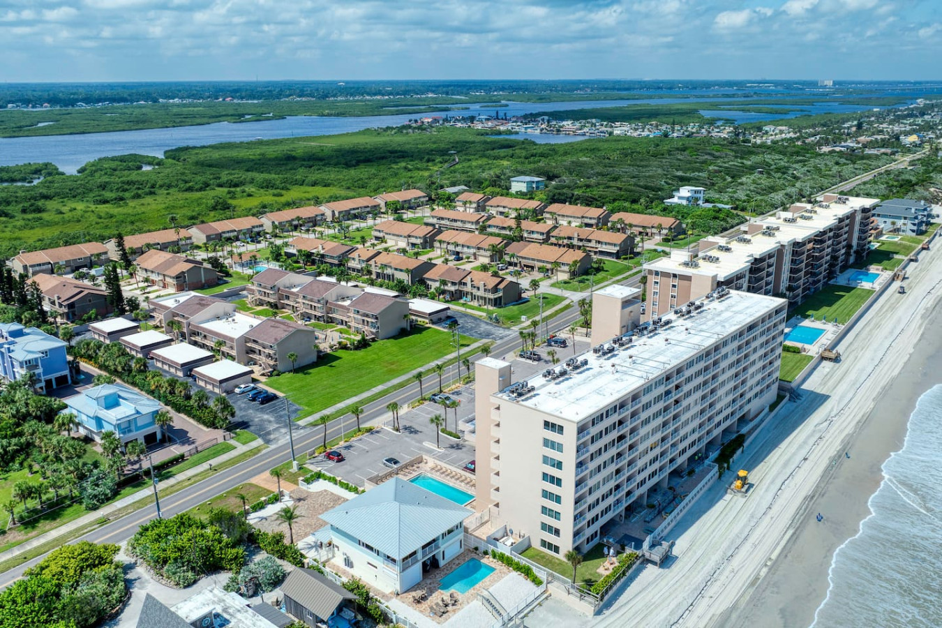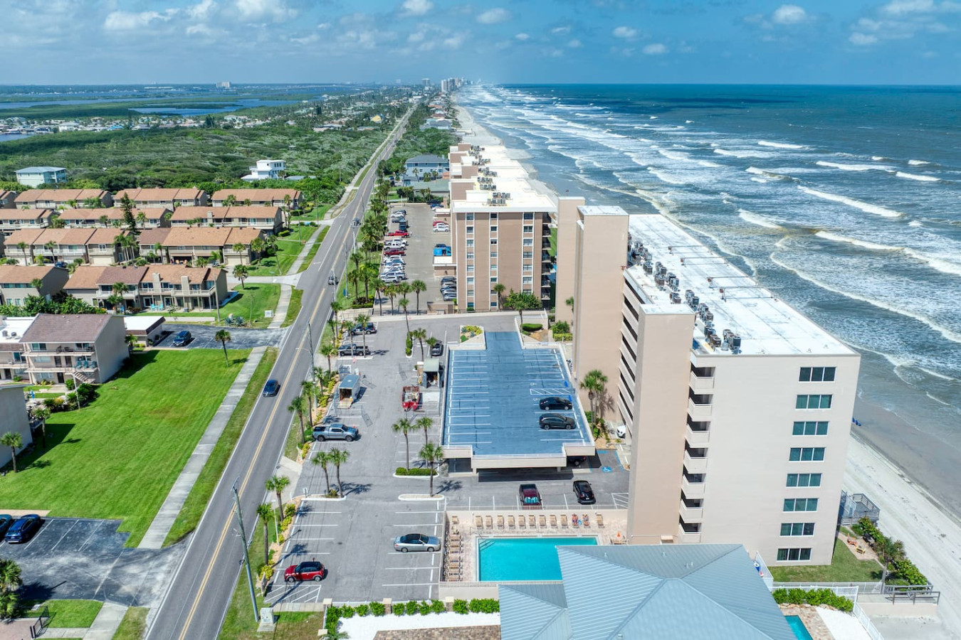 Your getaway begins where the ocean meets relaxation. This Ponce Inlet condo offers direct beach access, a resort-style pool, and a private balcony overlooking the Atlantic. Inside, you’ll find an airy open layout, coastal décor, and everything you need for a carefree stay — from a fully stocked kitchen to plush bedding and beach gear. Spot dolphins at sunrise, unwind poolside, and fall asleep to the rhythm of the waves.