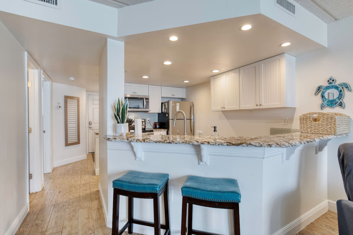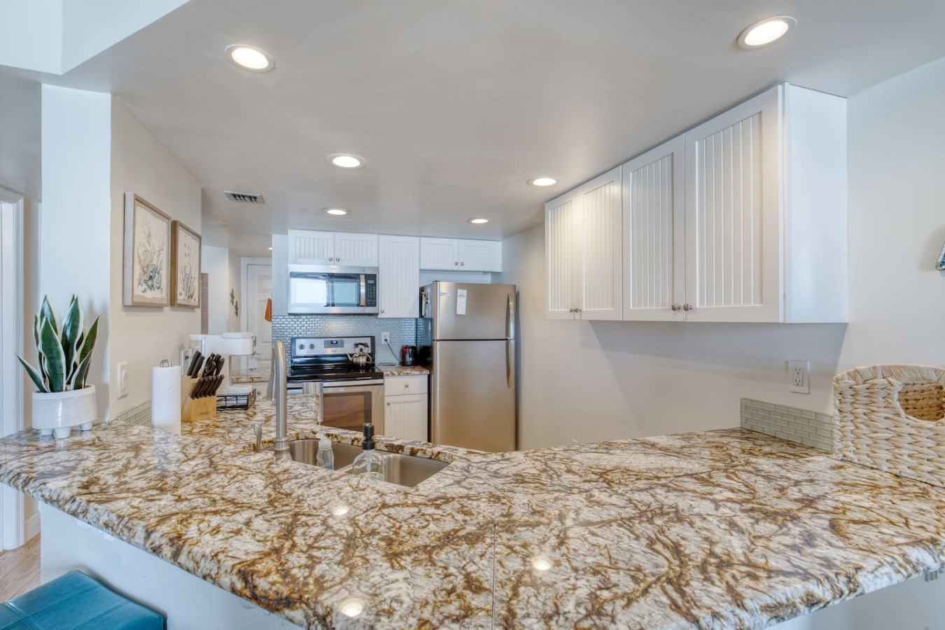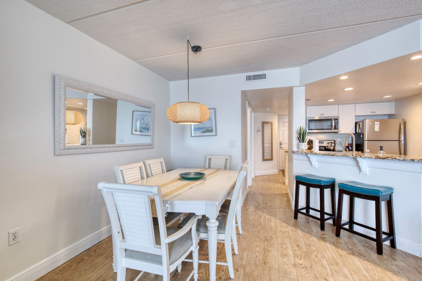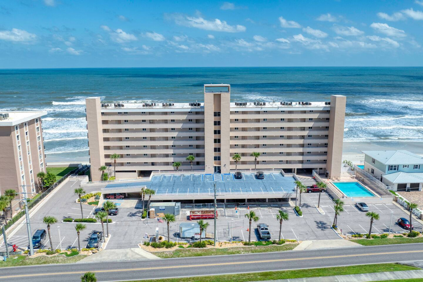 Your getaway begins where the ocean meets relaxation. This Ponce Inlet condo offers direct beach access, a resort-style pool, and a private balcony overlooking the Atlantic. Inside, you’ll find an airy open layout, coastal décor, and everything you need for a carefree stay — from a fully stocked kitchen to plush bedding and beach gear. Spot dolphins at sunrise, unwind poolside, and fall asleep to the rhythm of the waves.