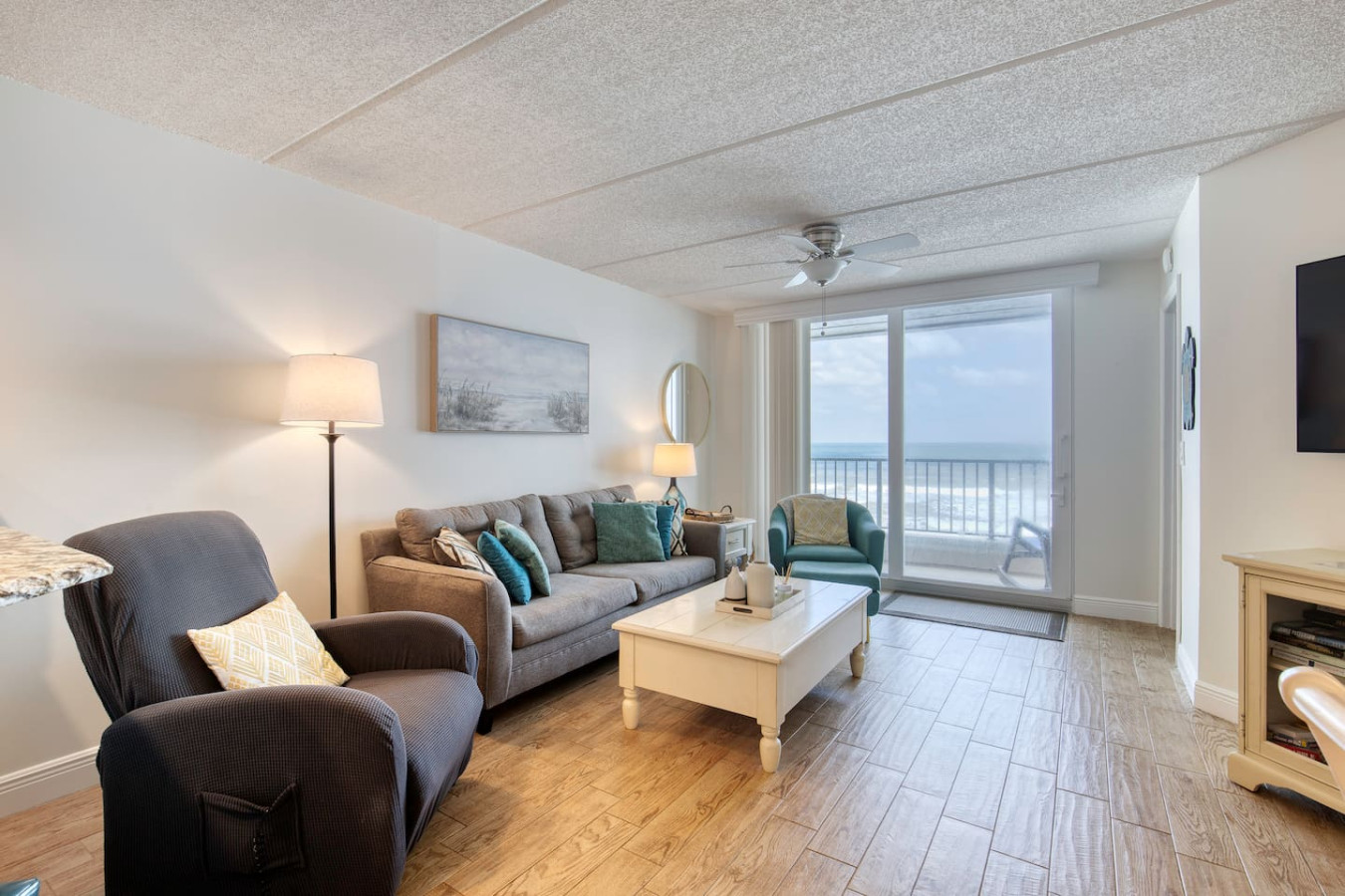 • Oceanfront views from living room + balcony
