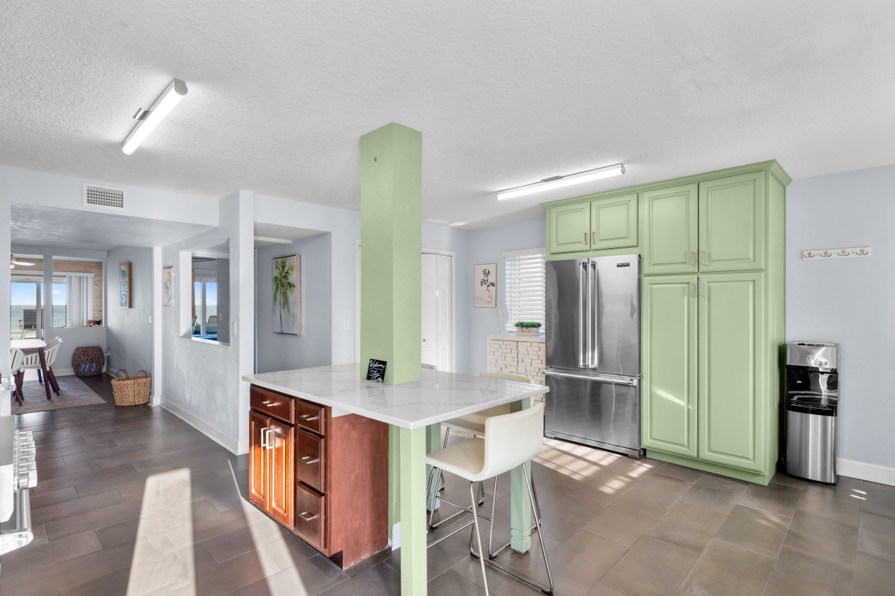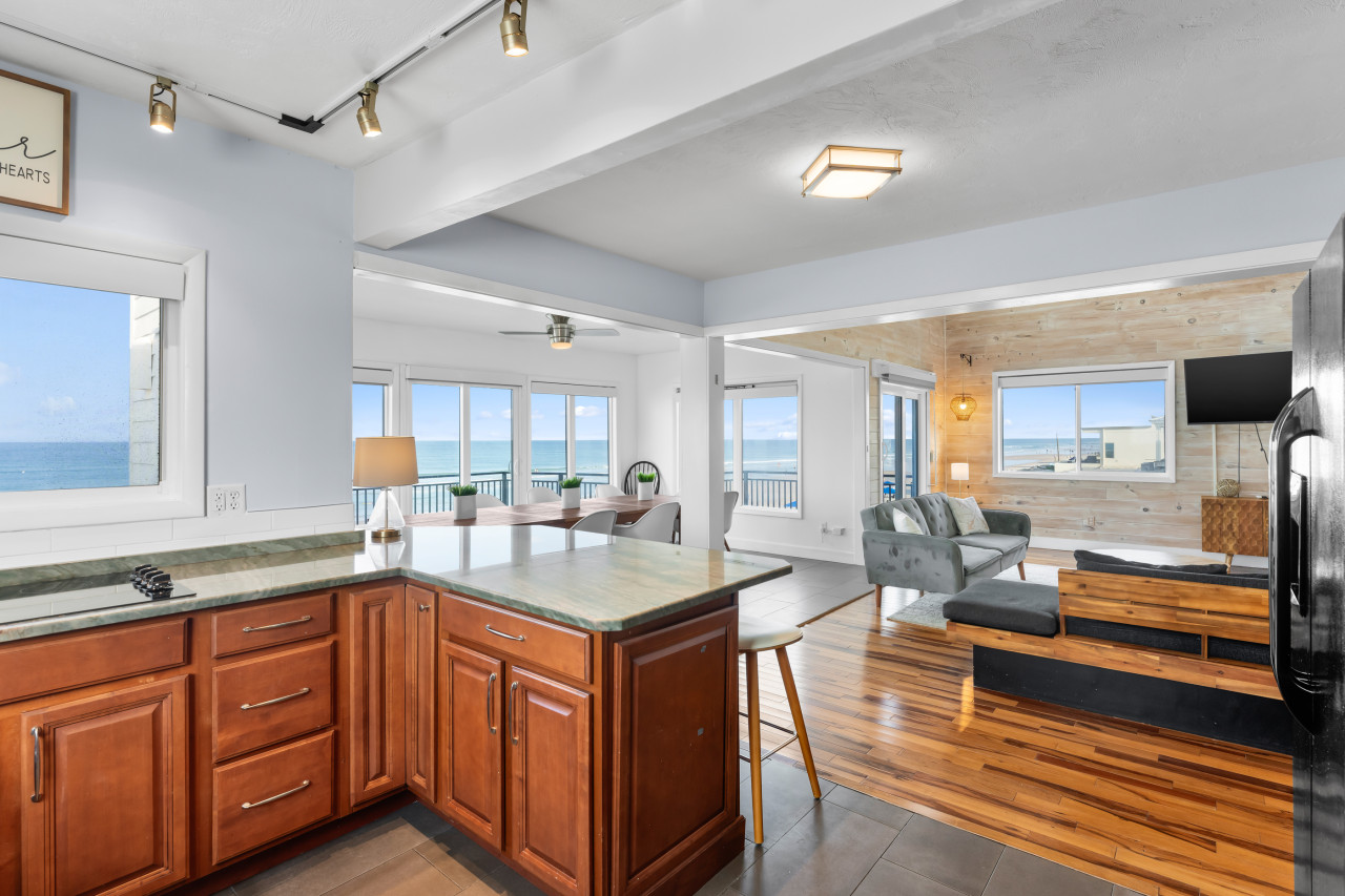 Thank you so much for your amazing review! 🌞 We’re so happy you had a great stay and that Corey helped make everything smooth and stress-free—he’s the best! 💙 The two kitchens are definitely a unique touch, but more space for snacks is always a win, right? 😄 And we couldn’t agree more—the beachfront location is truly unbeatable! We’d love to host you again anytime for another perfect beach getaway. 🏖️✨My Salty Dog Vacation staff