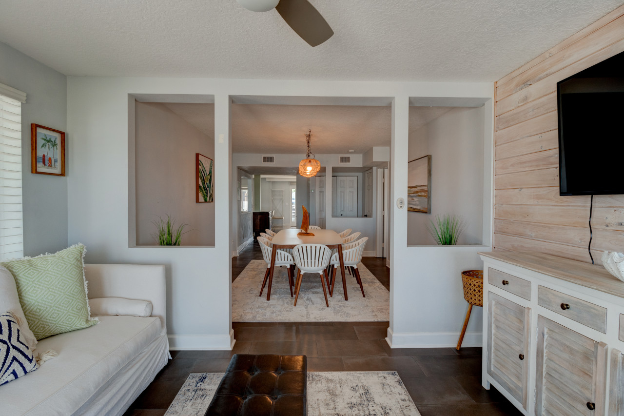 The property is in a quiet part of the Daytona Beach area. Home has many sleeping/bathroom options. Two gathering places and kitchens that are quite helpful. Very clean, great walking on the beach. Would recommend highly. The Salty Dog renting system was also very responsive.Carol W. - Posted: 1/29/2024