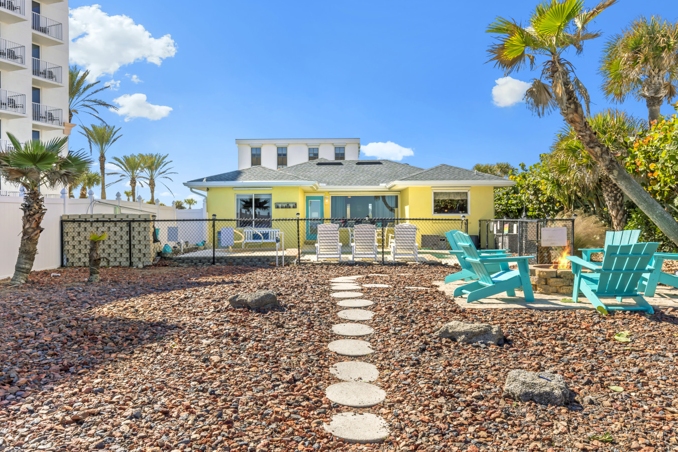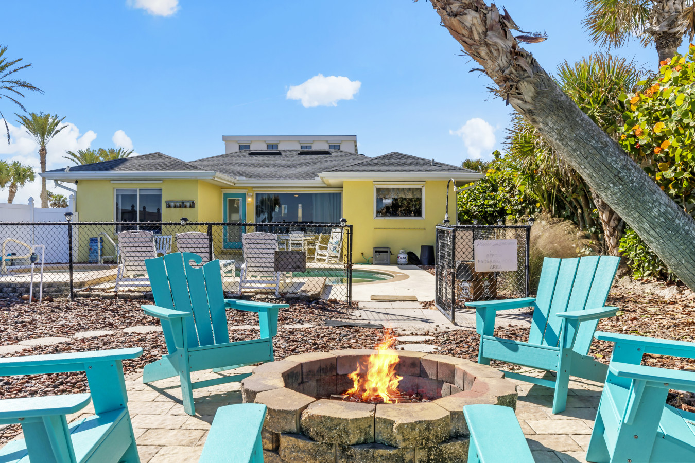Outdoor highlights include a private pool, sunrise deck, and fire pit for relaxing evenings by the ocean.