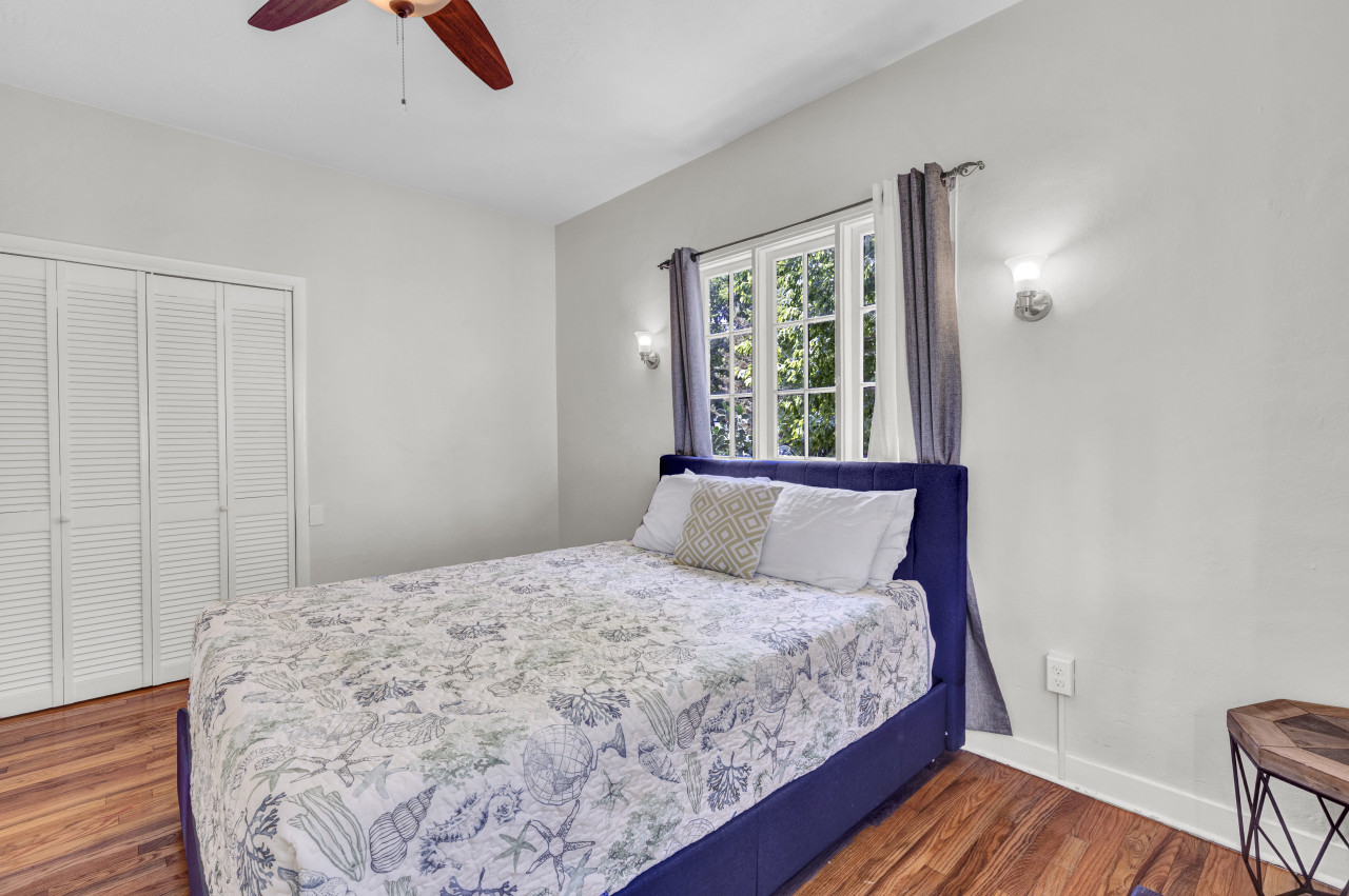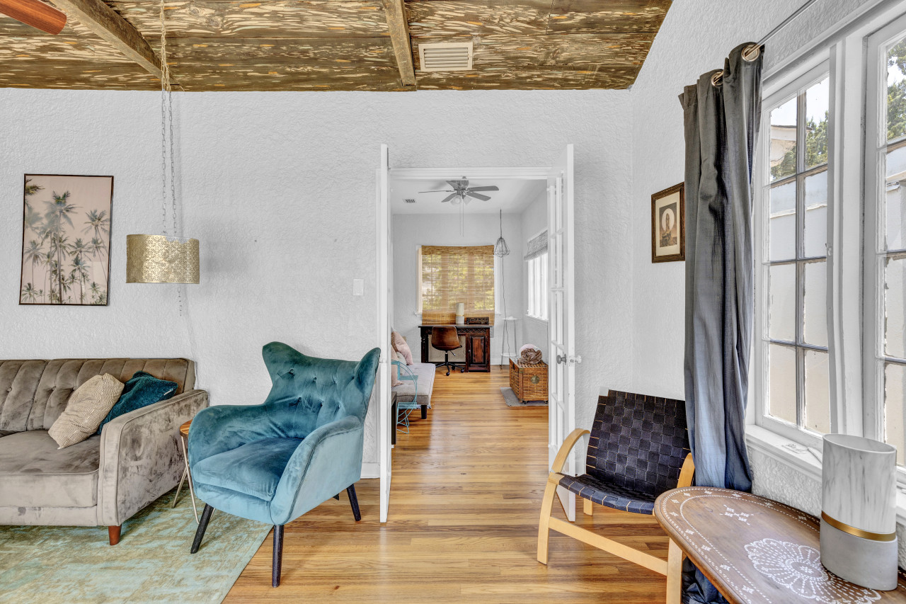 Adorable bungalow main house with fenced in yard and mid-modern decor. Enjoy an oasis with a fully stocked kitchen and everything you need to have a great family vacation. Please note, guest house may be occupied unless you rent the entire bungalow (different listing, search Spanish Bungalow). Guest house has separate entrance, yard for pups and laundry building may be shared.