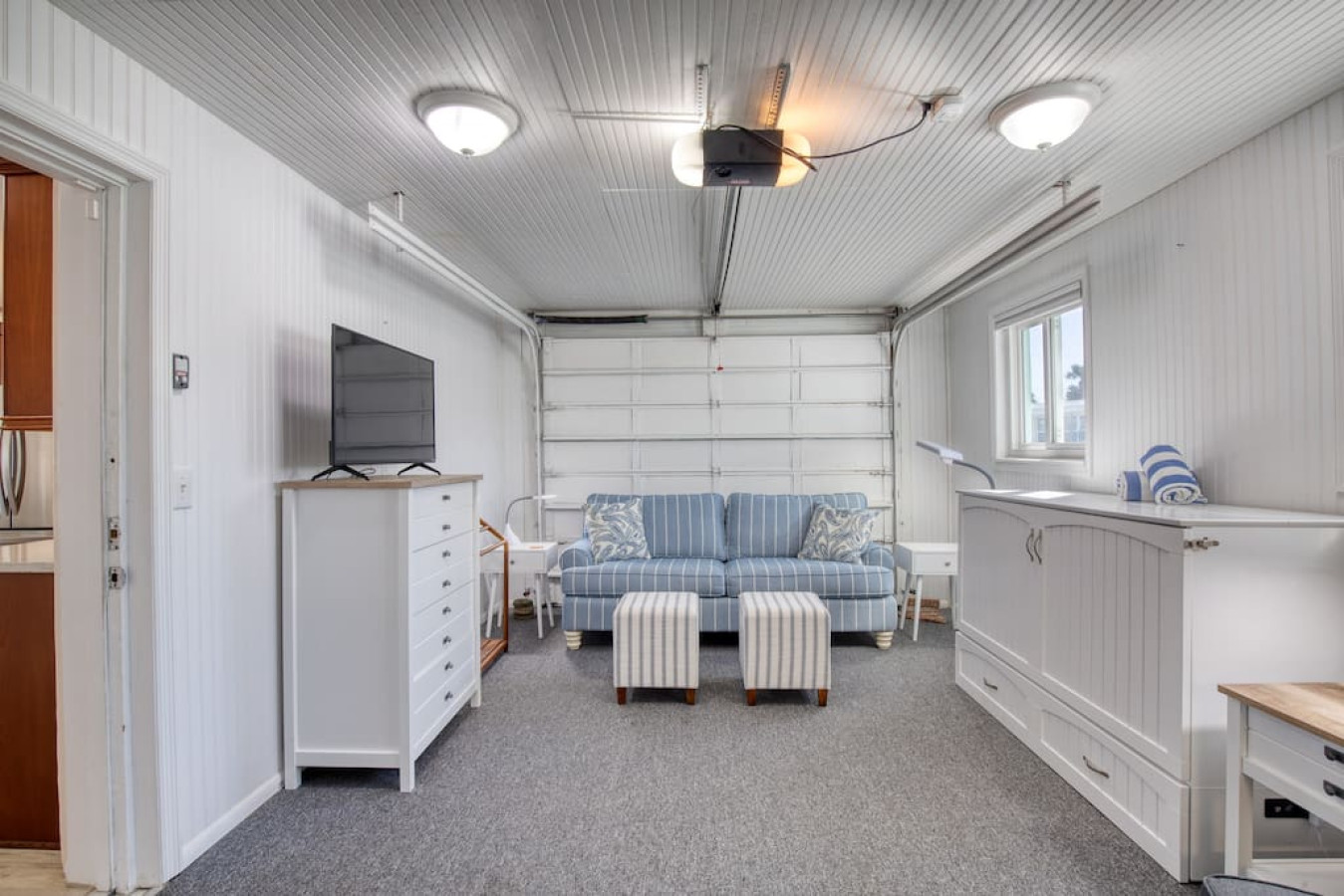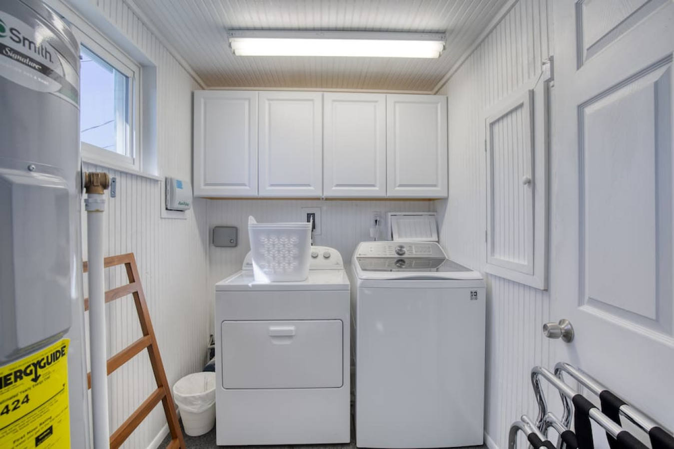 There are two bedrooms both with a king bed and a third space with a queen cabinet bed. There are 4 smart TVs. The house sleeps six, comfortably.